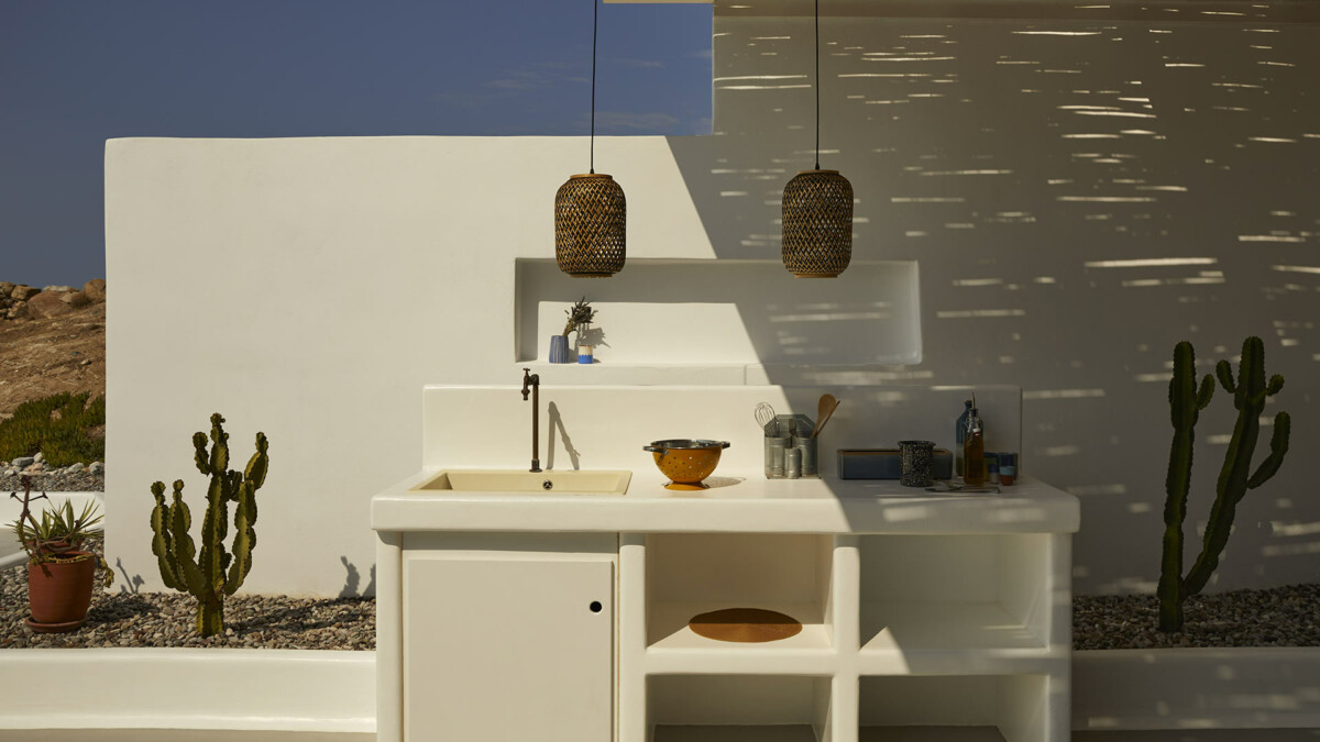 Les extérieurs disposent d’une piscine rafraîchissante et revigorante (7 x 2,5m – Profondeur : 1,20m) dans laquelle vous pourrez vous baigner à tout moment de la journée. La cuisine d’été s’impose comme le cœur de cet espace extérieur accueillant, où la pergola et la terrasse se mêlent harmonieusement pour créer une connexion entre toutes les parties de la propriété. Cet aménagement invite à des moments de détente et de partage, face à la beauté intemporelle de la mer et des paysages de Naxos.