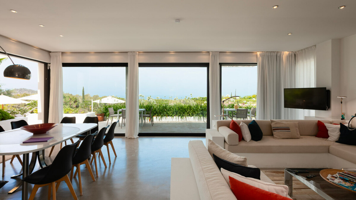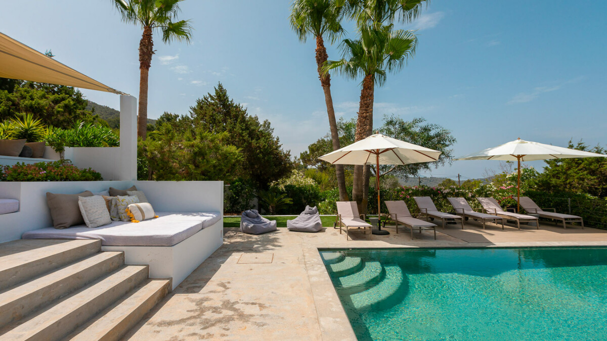 Entouré d’un magnifique jardin, la villa se trouve à seulement quelques minutes des plages de la côte ouest, comme Cala Tarida, Cala Conta, Cala Carbo, Cala Vadella, Cala Moli… A 5 km de San José et à 20 km de la ville d’Ibiza. Supermarché 2 km.