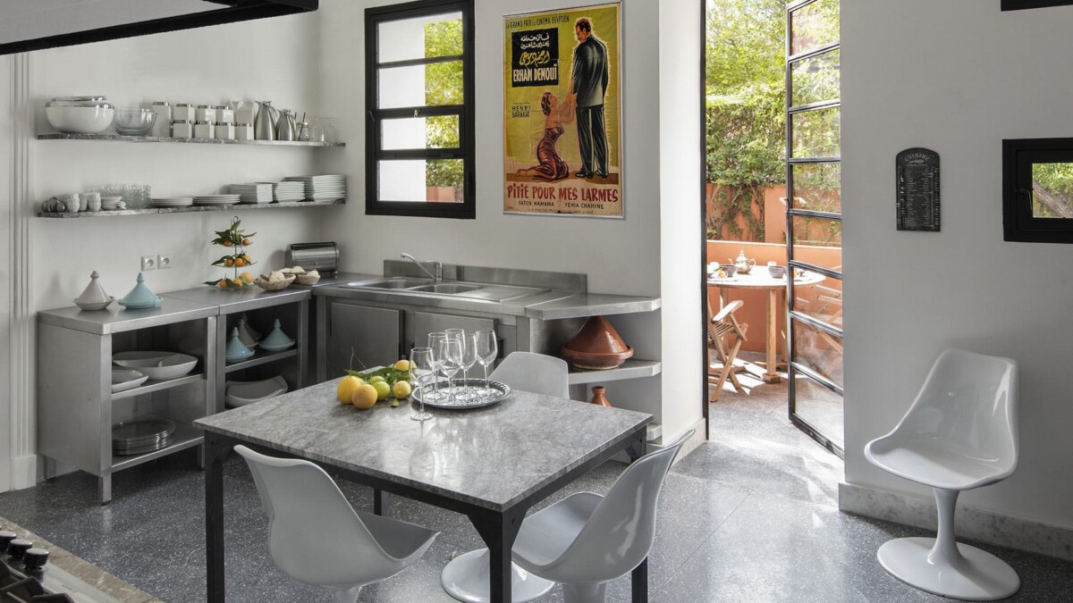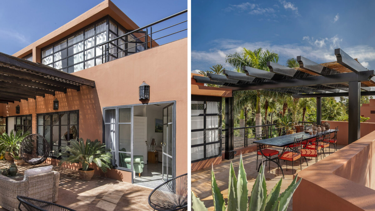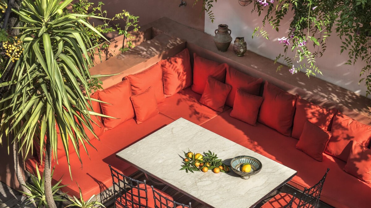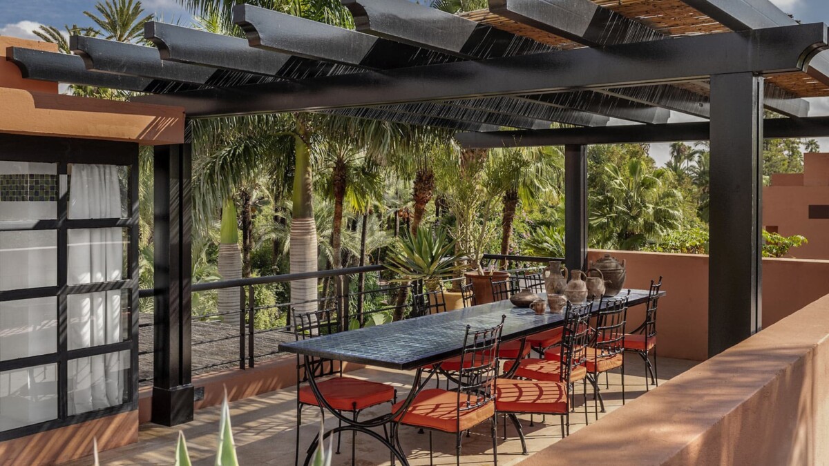 La terrasse panoramique surplombe la végétation luxuriante du quartier Majorelle. Vous pouvez vous reposer dans la piscine (8mx3m) avec les transats tout autour.