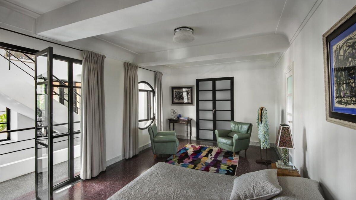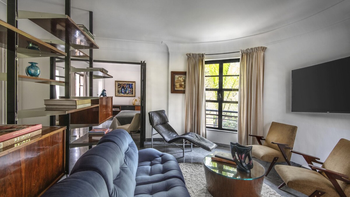 Au fil du temps, la présence de cette demeure s’affirme au point qu’il est difficile de la quitter. C’est exactement ce que son inspirateur Robert Mallet Stevens, célèbre architecte de la première moitié du siècle dernier préconisait : « un endroit où l’on vit doit apporter le calme » Tout ce qu’il a institué se retrouve ici : des lignes nettes et assez rigides, de larges pans de murs vitrés, pour la première fois en angle, qui laissent entrer la nature, la priorité de la lumière qui doit entrer à flots, non seulement pour éclairer mais sublimer les volumes et les objets, un mobilier bas pour laisser libre cours à la perspective mais un arrêt de l’œil léger, comme ces armures qui supportent le verre, pour éloigner la paysage et permettre la fuite des lignes, l’importance des terrasses situées à tous les niveaux, dans chaque pièces, pour jouir directement la vie à l’extérieur, des surfaces unies, des arrêtes vives, des courbes nettes, des angles droits, de la clarté et de l’ordre.