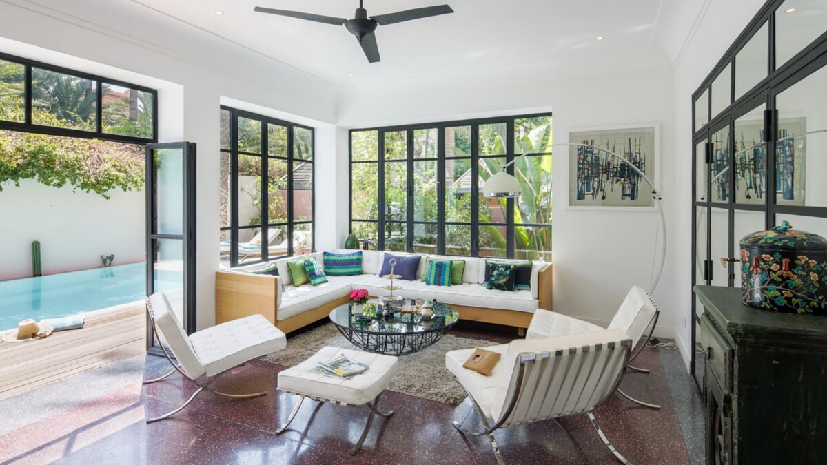 Cette Villa des années 50 complètement repensée il y a quelques années par l’architecte Roger Herrera est consacrée à l’art de vivre ensemble en intimité dans une ambiance épurée où il fait bon de se reposer du tumulte extérieur.