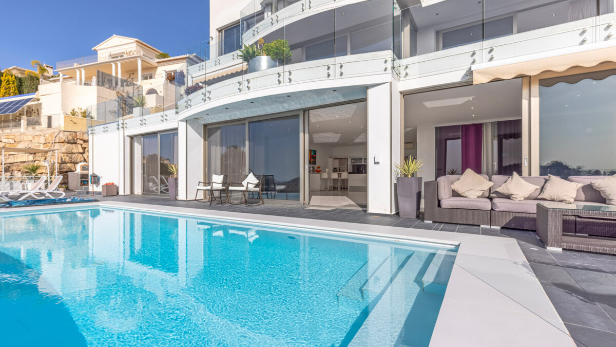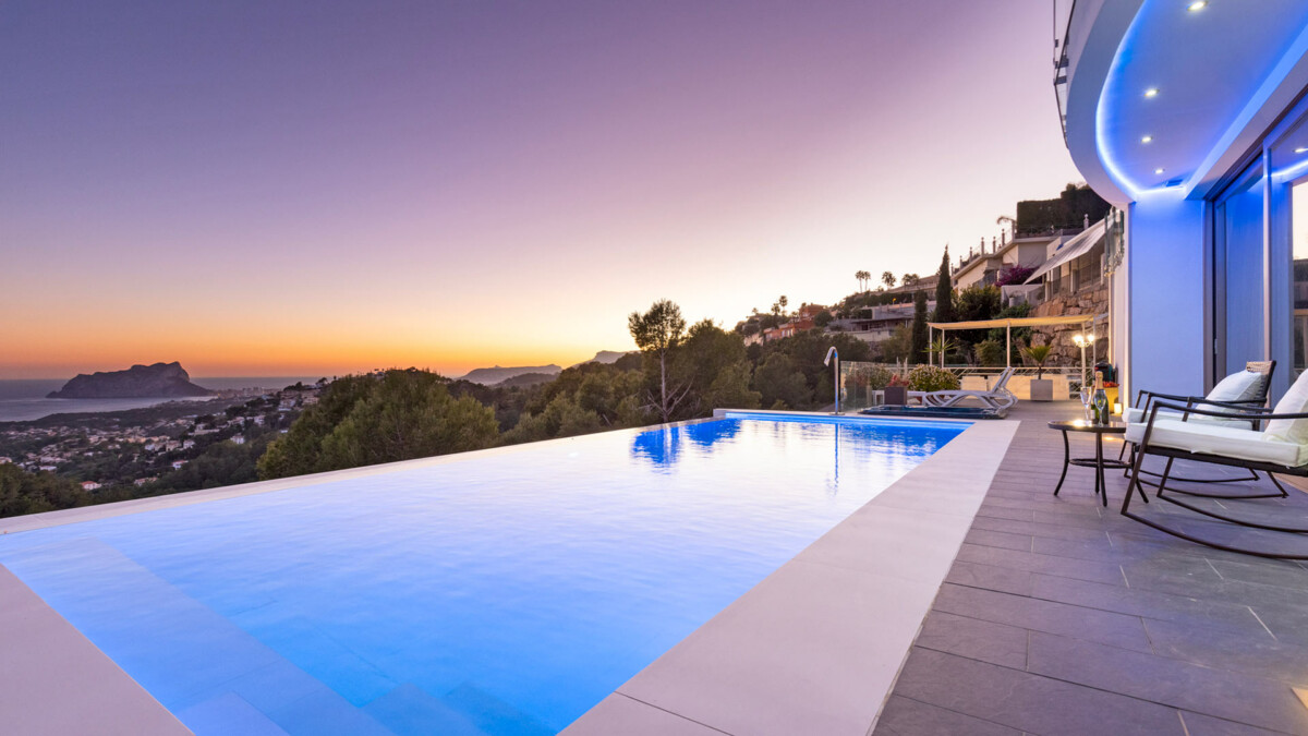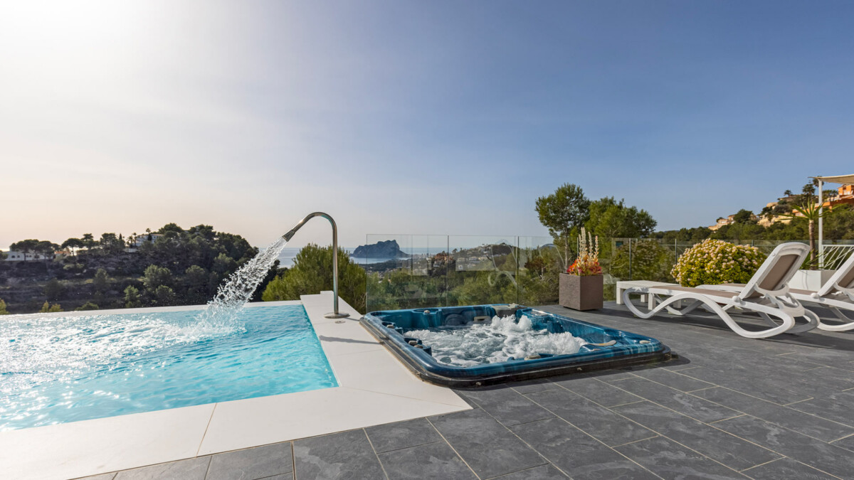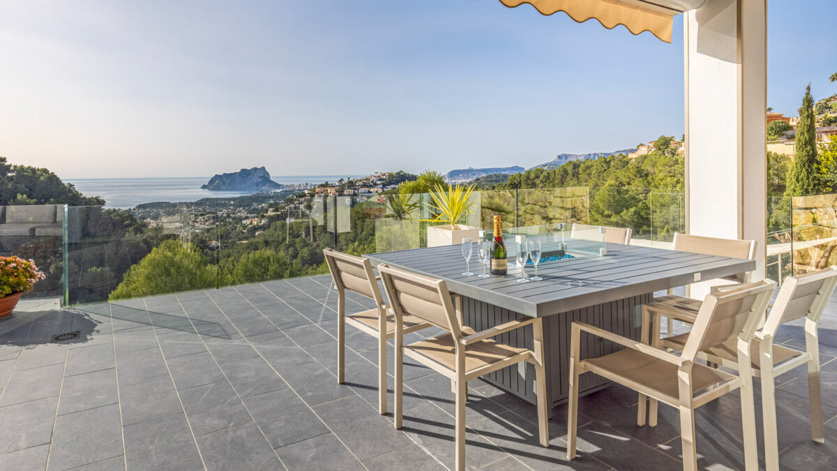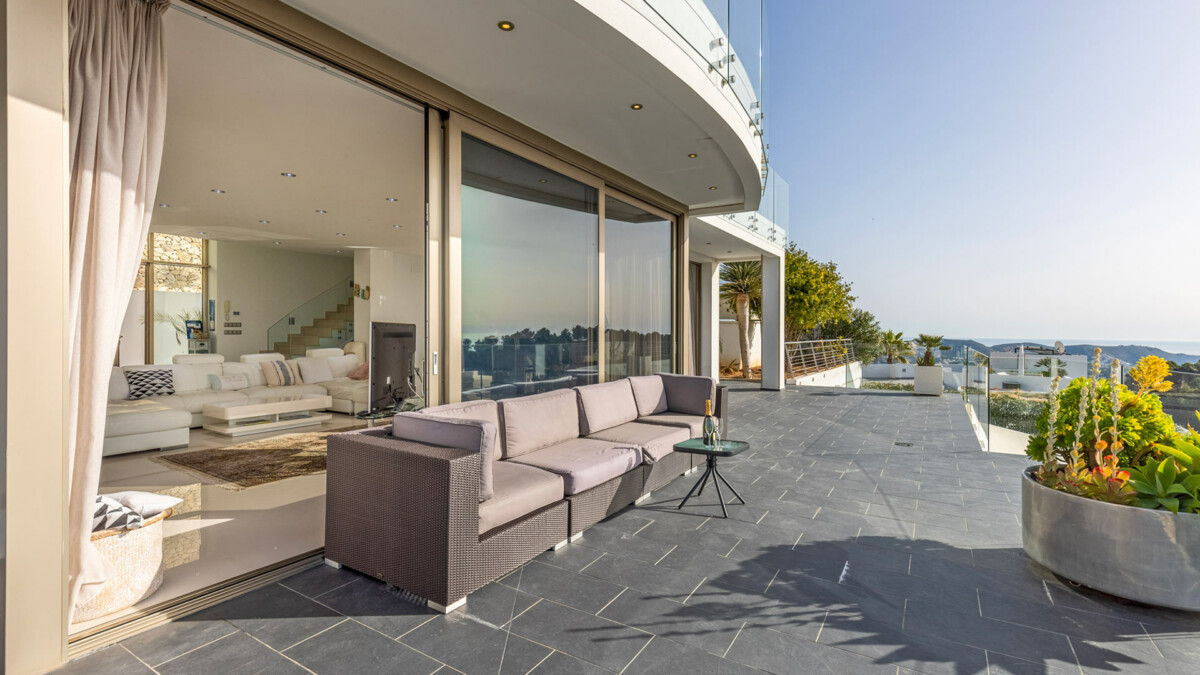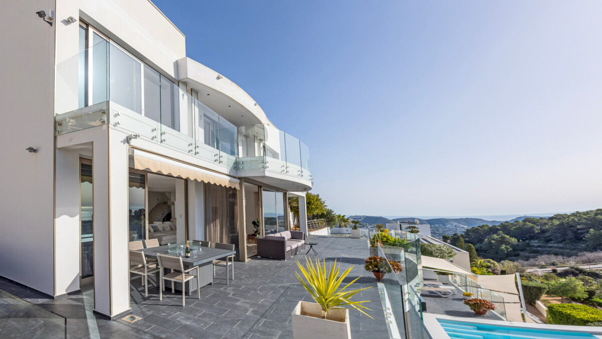 Belle propriété contemporaine de 500 m² située sur les collines de Moraira, offrant une vue panoramique spectaculaire sur la mer. Vous pourriez admirer de magnifiques couchers de soleil.