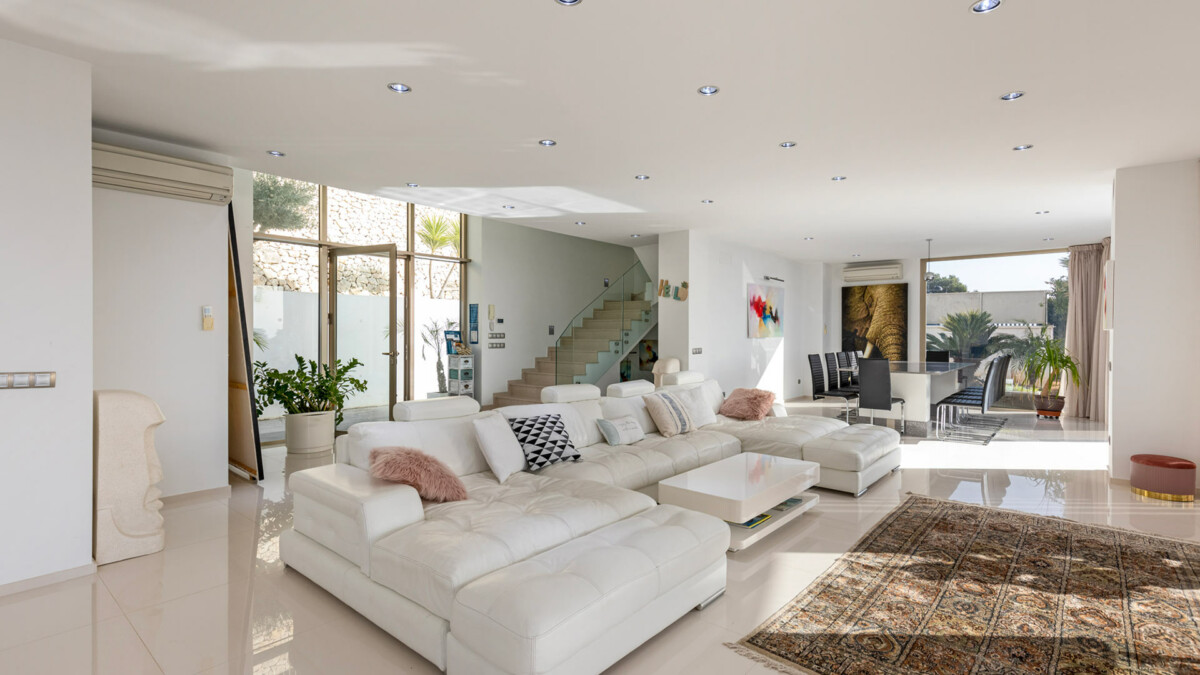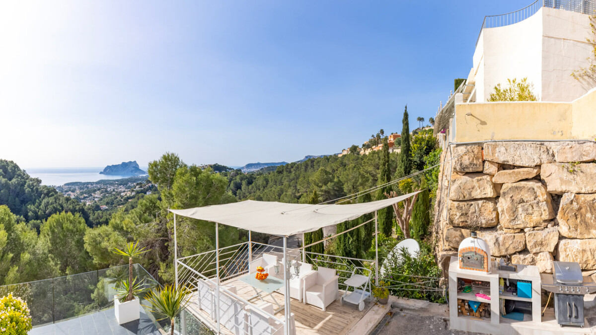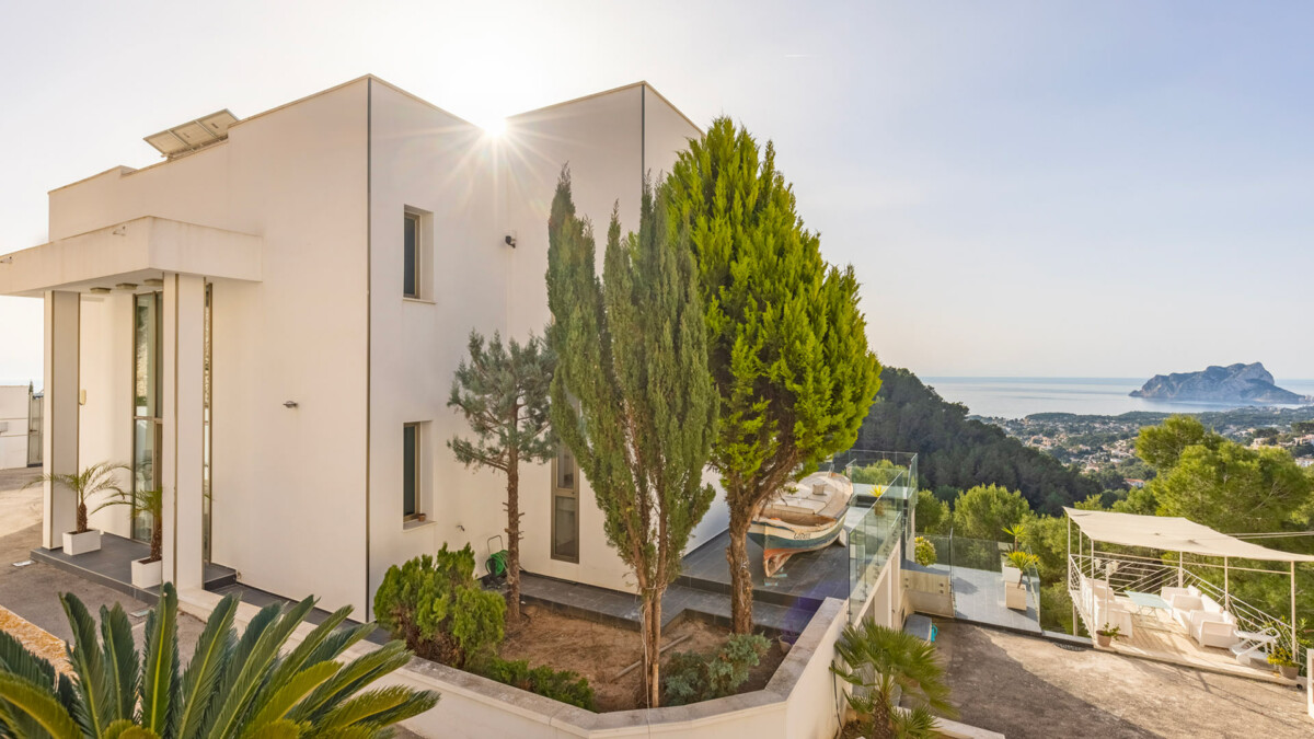 La villa est nichée dans un quartier privilégié de Moraira, en toute intimité, entourée d’une belle végétation.