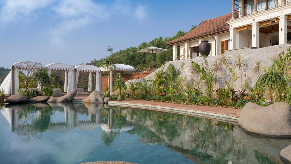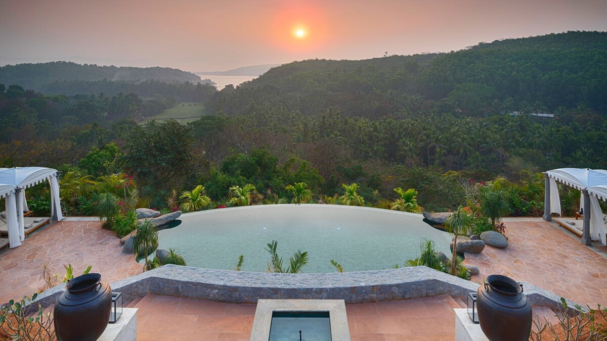 Nichée au sud de Gokarna, où les falaises du Ghat occidental plongent dans l’océan Arabique, la propriété est perchée sur les collines et offre une vue imprenable à 360 degrés sur la jungle, l’océan et les montagnes au-delà. Entouré de nature, paisible et presque spirituel, c’est un endroit vraiment insolite et exceptionnel. Récemment construite, la villa propose six suites spacieuses et luxueuses, chacune décorée individuellement avec des tissus indiens raffinés, des tapis, des meubles, des portes anciennes et de hauts plafonds avec ventilateurs et climatisation. Toutes les suites disposent d’une vue imprenable sur la jungle et l’océan.