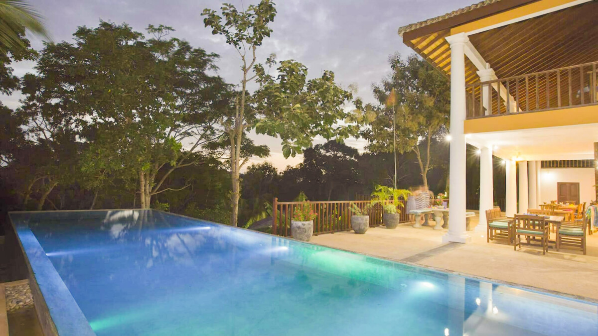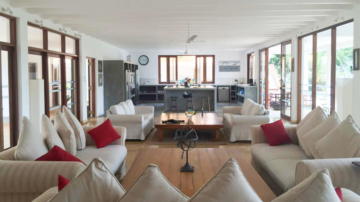 La propriété est située dans 6000m2 de jungle, sur la côte sud du Sri Lanka. Le projet de conception était de créer des espaces de vie grands, lumineux et ouverts.