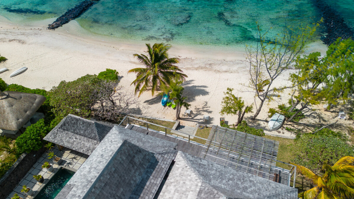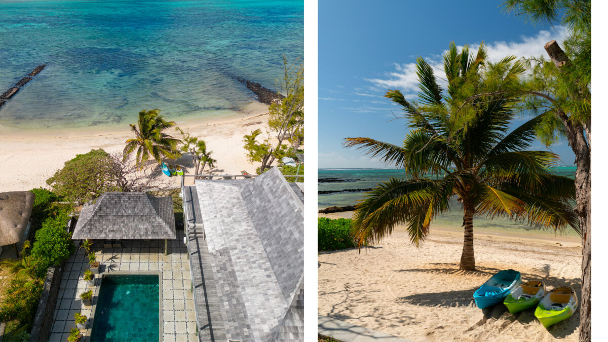 La villa se situe face a la magnifique pointe du St Geran, plage de sable blanc. Pas de possibilité de baignade a marée basse.