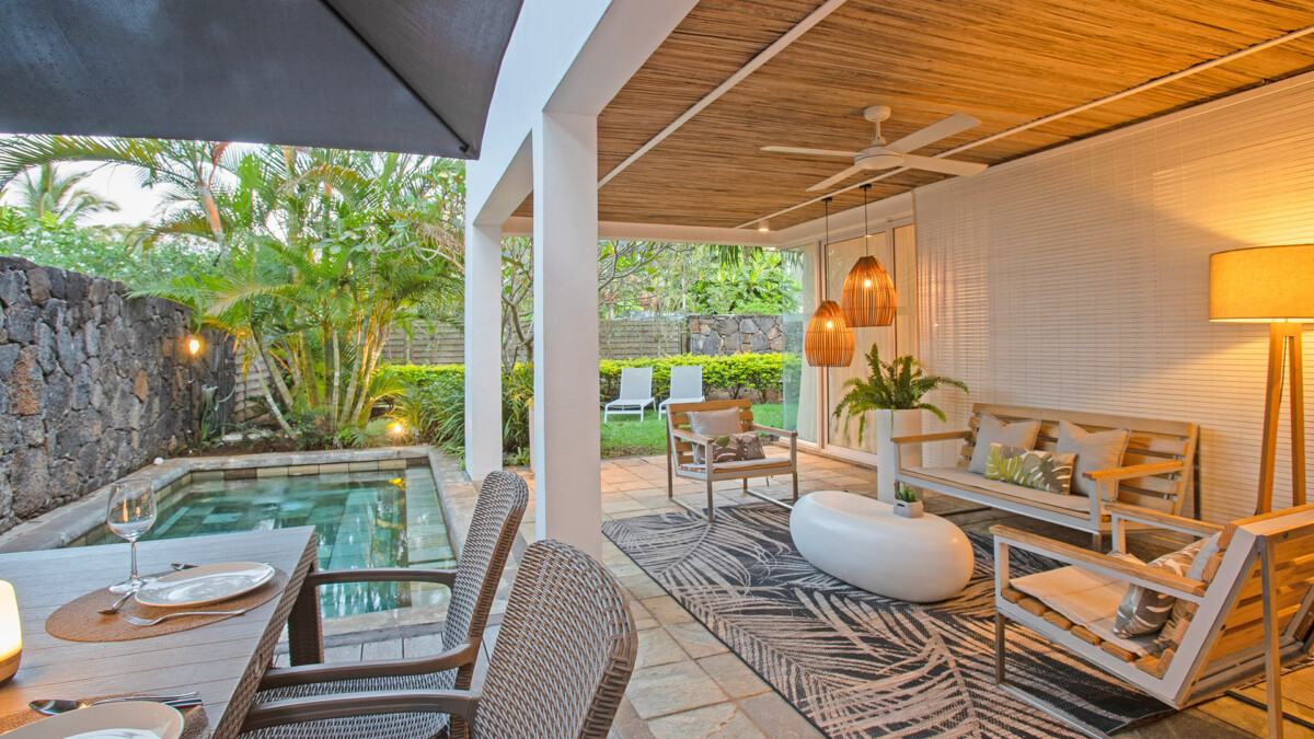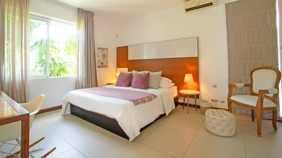 The villa is elegant, surrounded by exotic gardens and a few steps from a white sandy beach with a breathtaking view of the Indian Ocean and its dazzling waters.