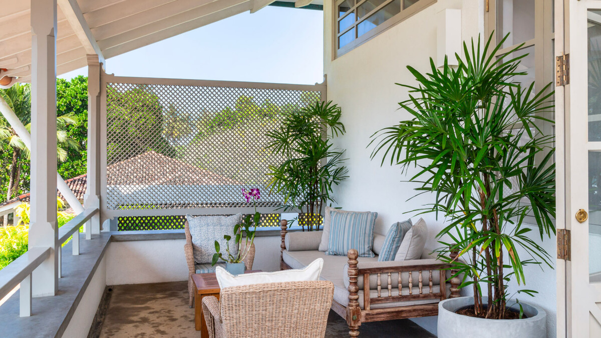 La villa a été conçue par Channa Daswatte, célèbre architecte sri-lankais, qui s’est inspiré des bungalows des chemins de fer coloniaux situés dans les provinces du nord-ouest et du centre-nord.