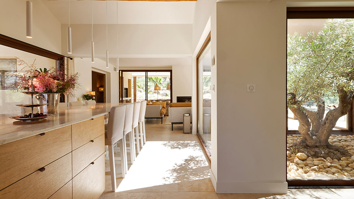 L’intérieur de la maison est un véritable sanctuaire de raffinement et de confort. Les matériaux utilisés dans la décoration intérieure témoignent d’un goût exquis et d’une attention méticuleuse aux détails, créant ainsi une atmosphère chic et apaisante.