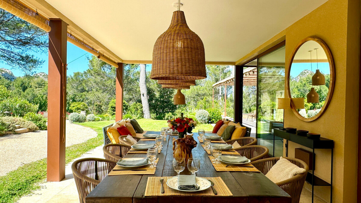 Sur un terrain de 1,5 hectare, le parc paysagé est peuplé d’essences méditerranéennes, offrant un cadre idyllique et préservé. La terrasse couverte est équipée d’un espace repas avec une grande table dinatoire et une plancha, idéale pour des repas en plein air. Une agréable piscine (de 10 x 5m – profondeur : 1.6m) promet de rafraîchissantes baignades sous le soleil provençal, complétée par un terrain de pétanque pour des moments de convivialité. Vous retrouverez également plusieurs terrasses aménagées offrant divers coins détente pour profiter pleinement de la paix environnante et des vues spectaculaires.