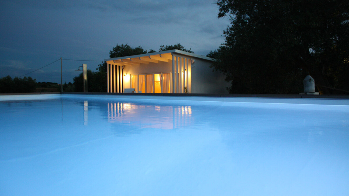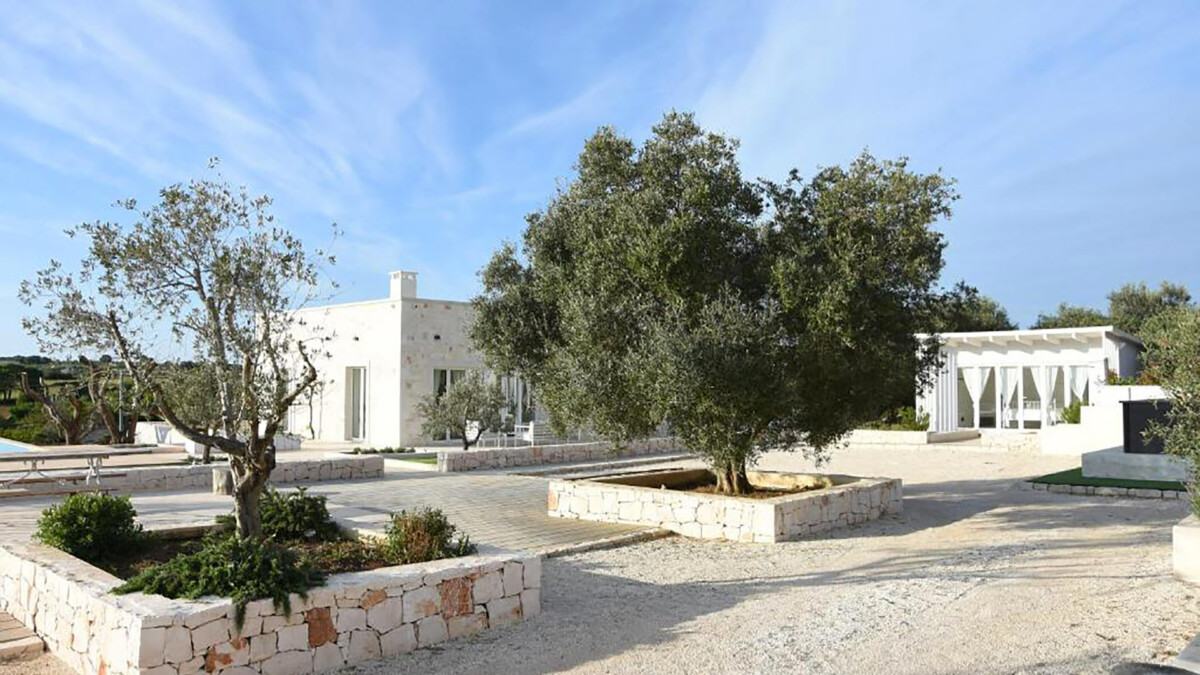 Le Trullo a deux cônes et contient une chambre double, un salon et une salle de bain. Le premier bâtiment en bois comprend une chambre double avec une salle de bain et la véranda en verre abrite une cuisine et une table à manger. Le bâtiment en pierre comprend un espace de vie intérieur complet avec cuisine équipée, salon, salle à manger ainsi qu’une grande chambre principale avec salle de bain attenante. Il est relié par un couloir en verre à une autre chambre avec salle de bain attenante.