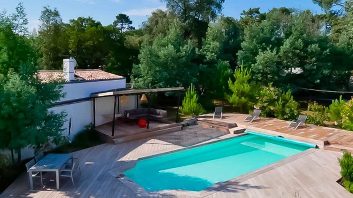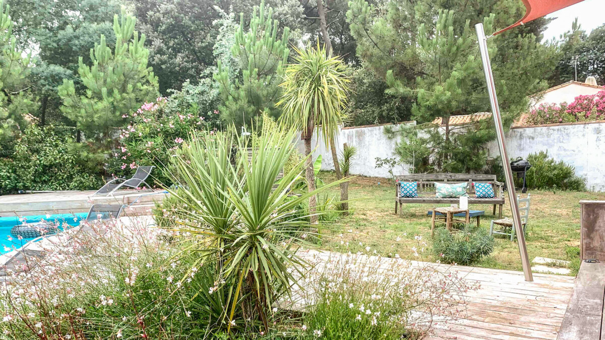 Détendez-vous sur une terrasse plein sud dans un havre de paix. La villa dispose d’un grand jardin arboré de avec piscine de 10 mètres.