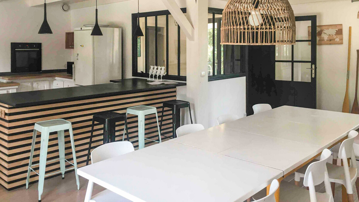 Nichée au milieu de la pinède, cette grande maison de famille de 205m2 accueille de 11 personnes à 14 personnes.
