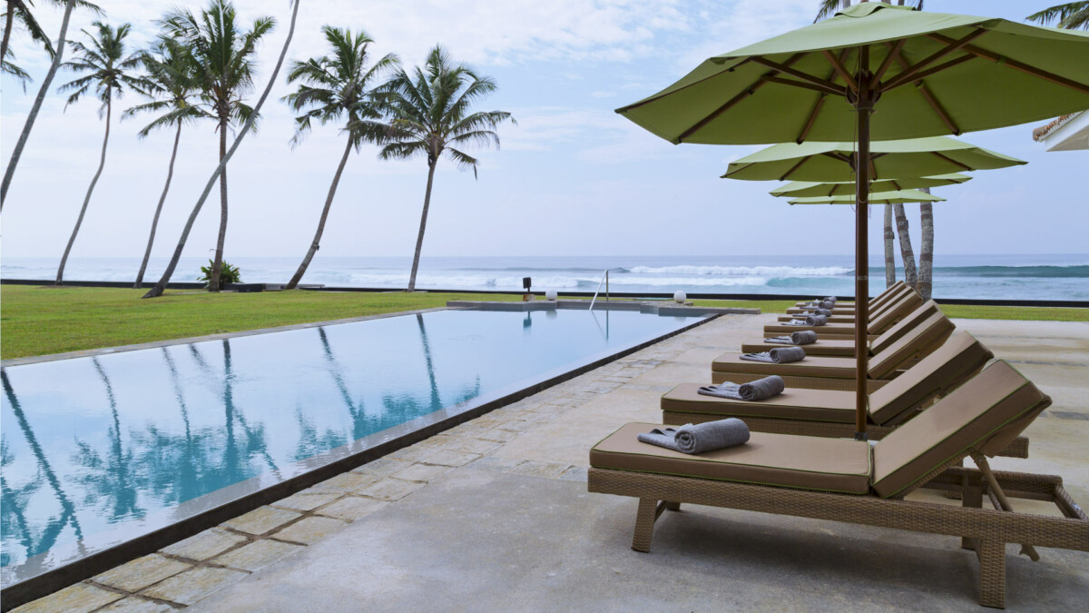 Appréciez langourousement la vue sur mer depuis votre élégante suite qui offre un accès direct à la véranda ouverte.