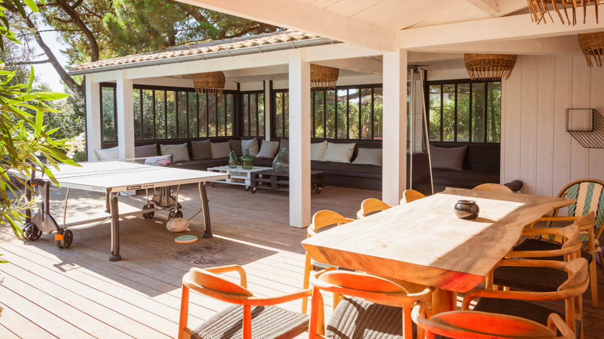 Entre la mer, la forêt et le village (Les Amazones est à 5 minutes à vélo de la place du village) dans un cadre dépaysant et une atmosphère de vacances, cette propriété de 3 bâtiments s’étendant sur 400m2, s’ouvre sur un jardin de 6500 m2 avec piscine chauffée. Ses nombreuses terrasses offrent des espaces indépendants pour chacun. La piscine et le pool house couvert sont le lieu de réunion parfait pour un moment convivial autour d’un verre à tout moment de la journée. Une terrace sur-élevée située au bord de la mer est l’endroit idéal pour un apéritif avec l’océan comme horizon ou un dîner pouvant s’accompagner d’un vrai feu de cheminée en extérieur autour de la plancha.