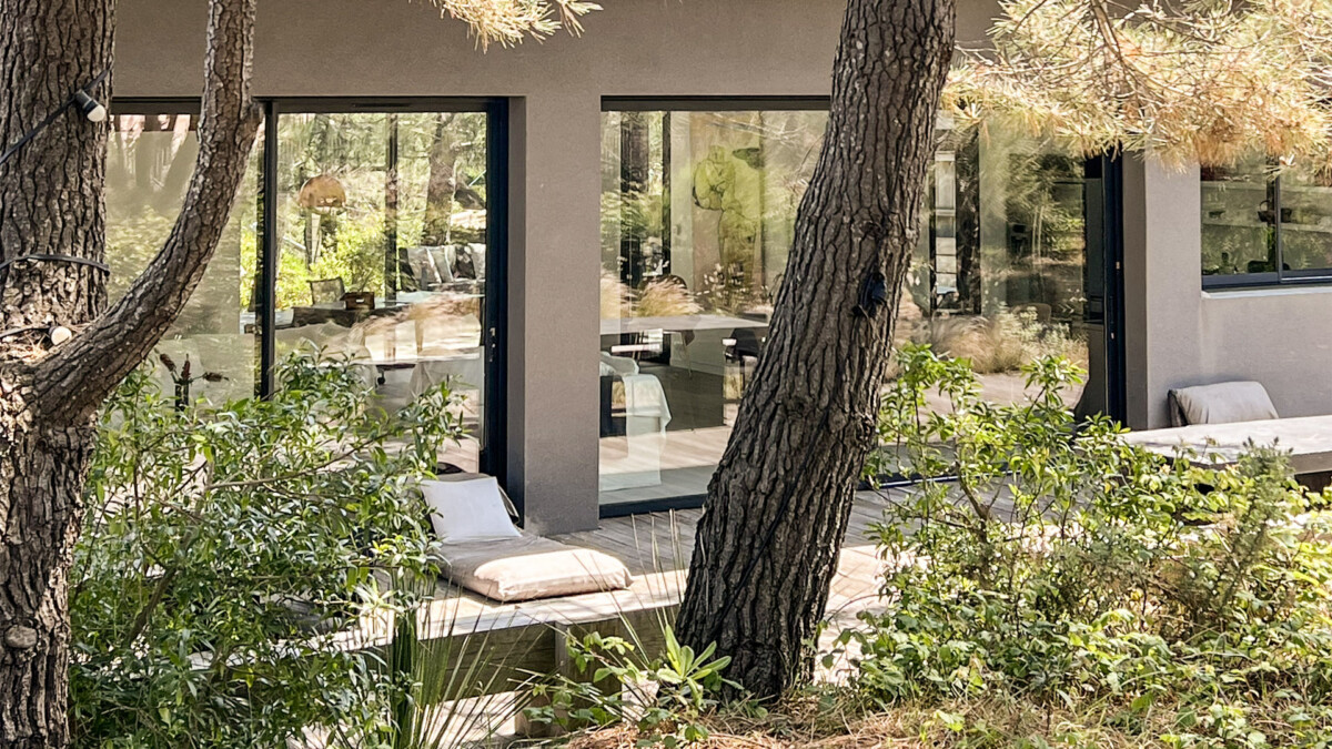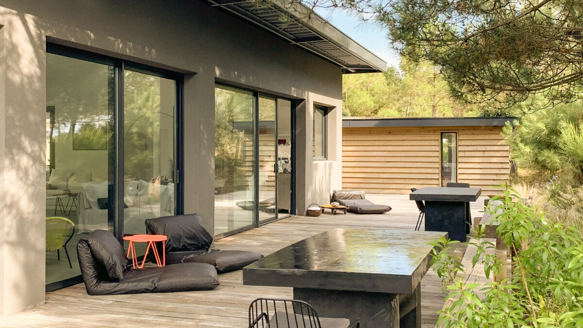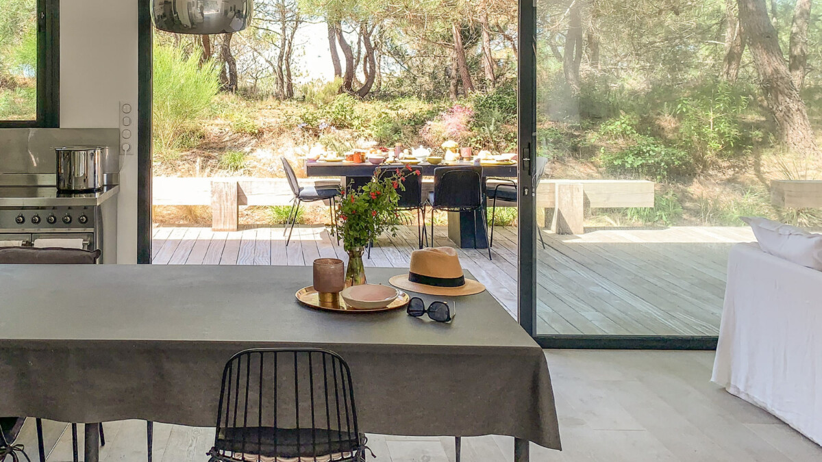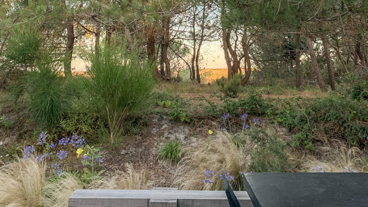La villa est idéalement située entre le bassin d’Arcachon et l’océan, juste en face des 44 hectares, un quartier sauvage à la pointe du Cap Ferret.