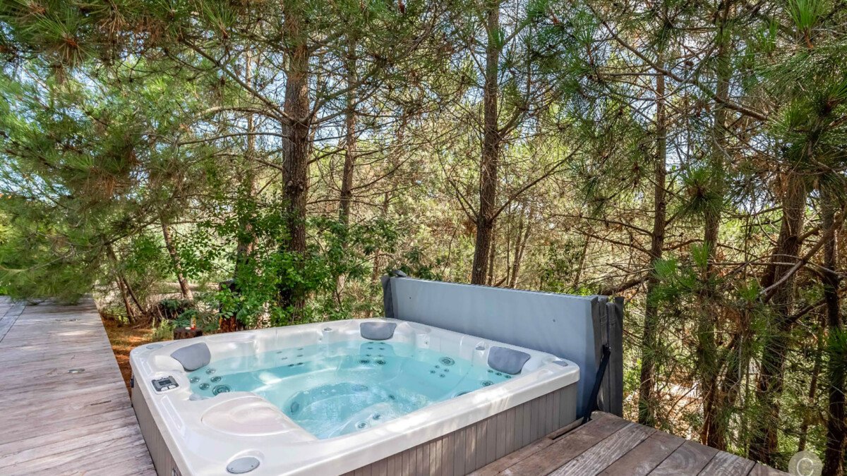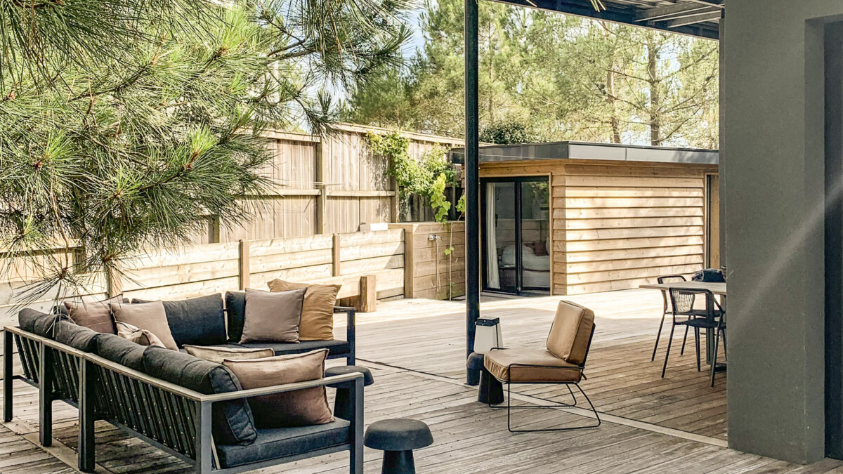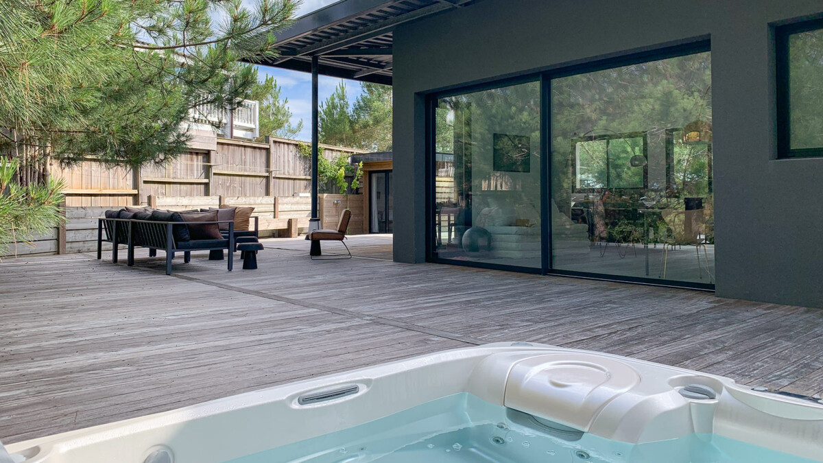 Vous pourrez profiter d’agréables moments de calme et de détente sur la généreuse terrace de 150m2. Celle-ci, a été soigneusement aménagée, et dispose de plusieurs espaces « salon » et d’un jacuzzi pour 5 personnes.