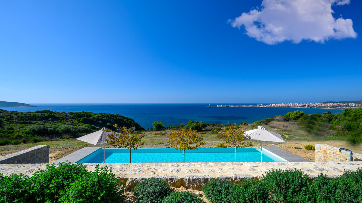 La Villa Léto est une villa contemporaine située dans le Péloponnèse, non loin de Pylos. Prenant place sur une colline au-dessus de la mer, cette propriété avec piscine et terrasses bénéficie de belles vues sur la mer le château médiéval de Methoni. C’est un lieu de séjour parfait pour d’incroyables vacances en Grèce.