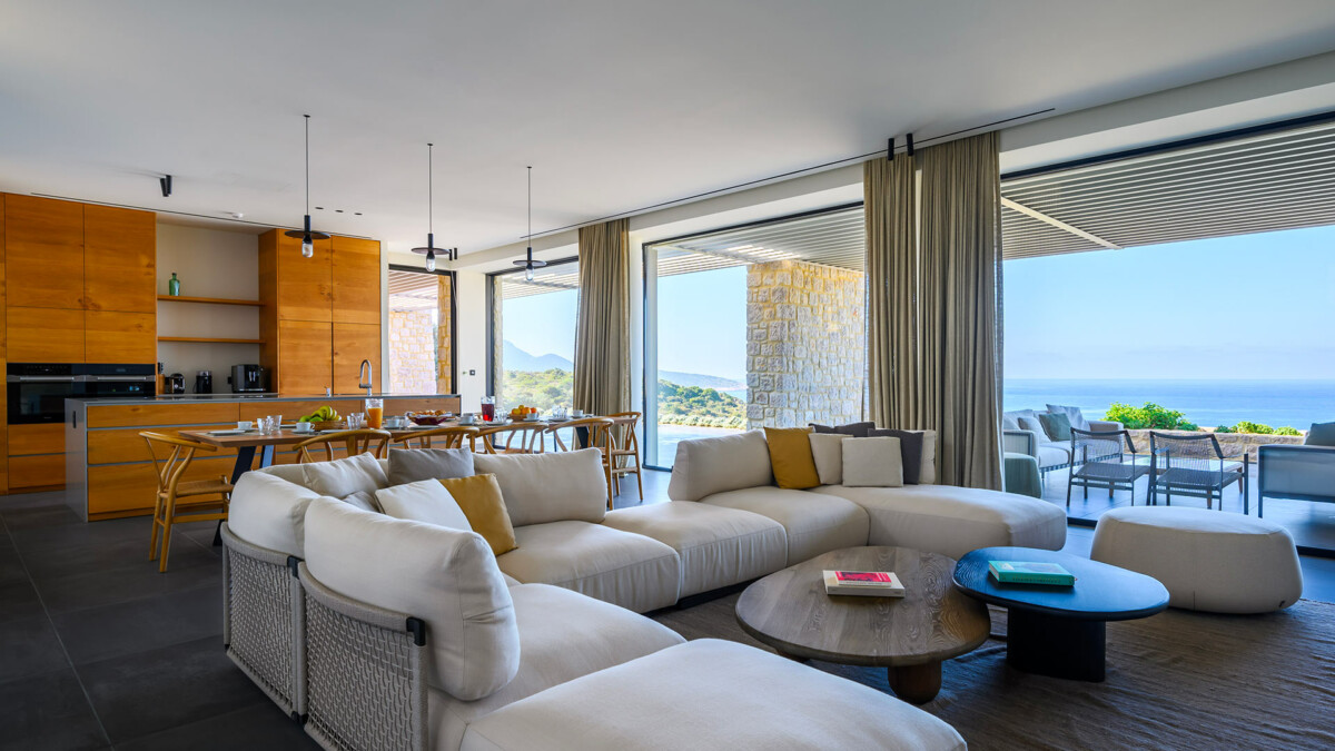 Les espaces de vie sont spacieux et sont encadrés par une captivante toile de fond composée de paysages marins. Vous bénéficierez d’un cadre et d’une atmosphère des plus agréables à l’occasion de vos apéritifs et repas.