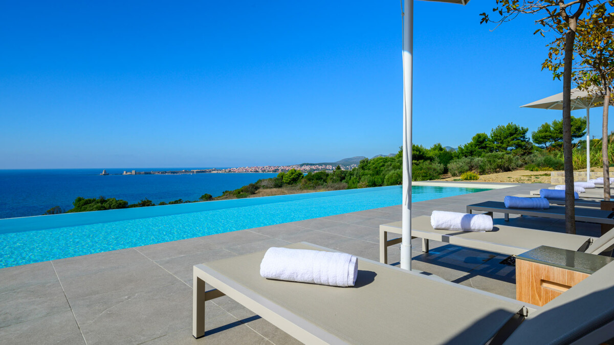 Vous pourrez profiter à loisirs des terrasses et de la belle piscine, qui offrent d’incroyables vue sur la mer.
