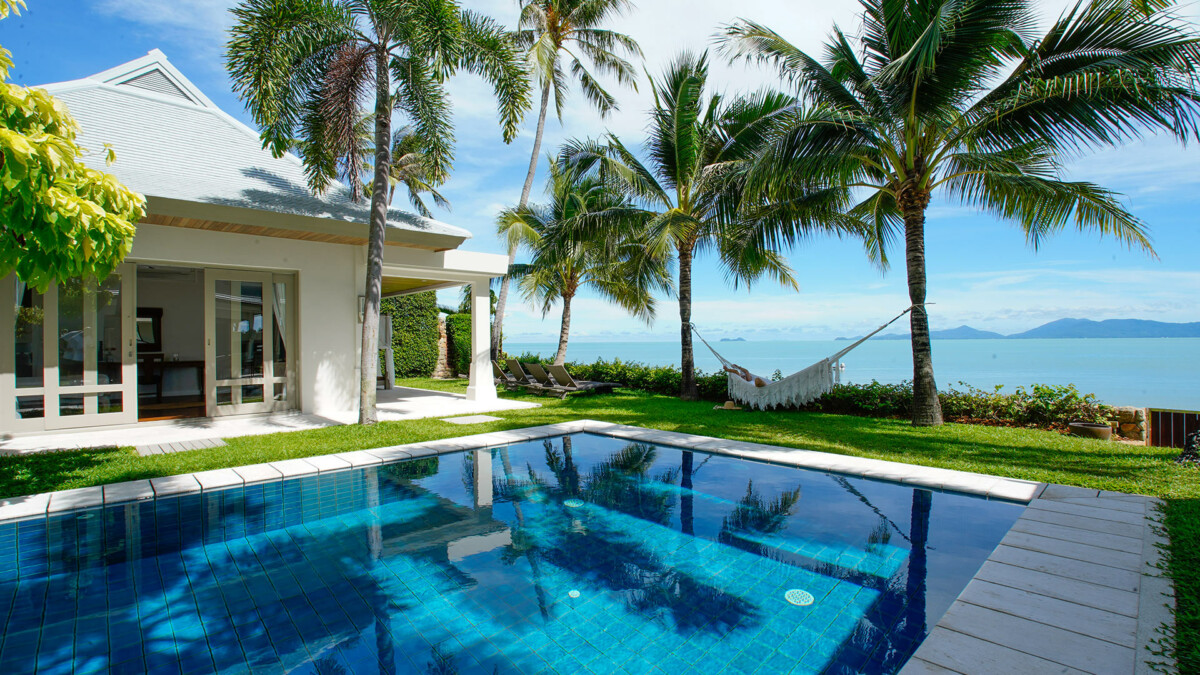 La piscine privée est idéalement située au centre de la villa, ce qui permet à chaque chambre autour d’avoir une vue sur la mer.