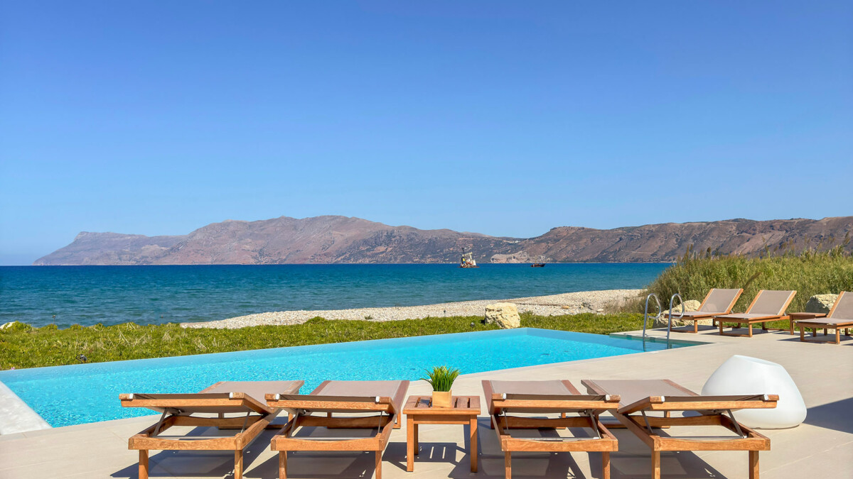 Lorsque vous descendez de la terrasse, passez la piscine à débordement et le coin repas en plein air, puis empruntez la passerelle qui traverse les galets, vous pénétrez dans les eaux chaudes pour découvrir un fond marin de sable fin.