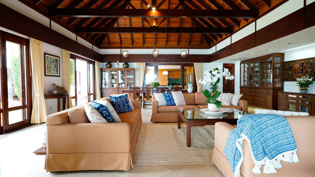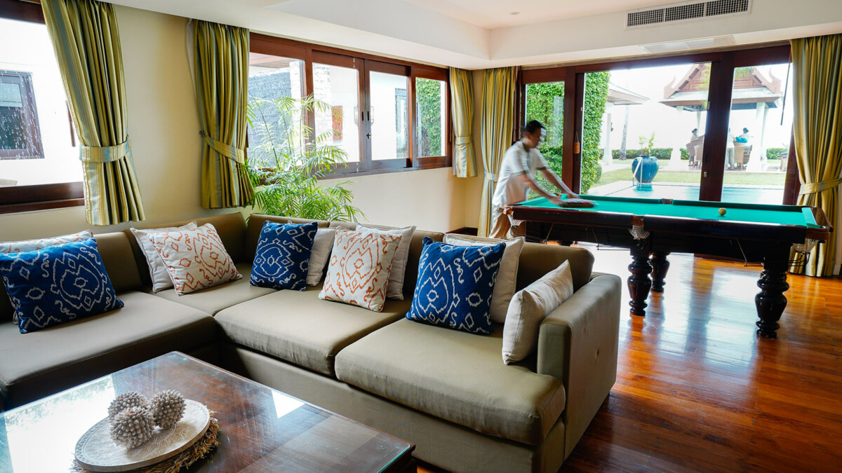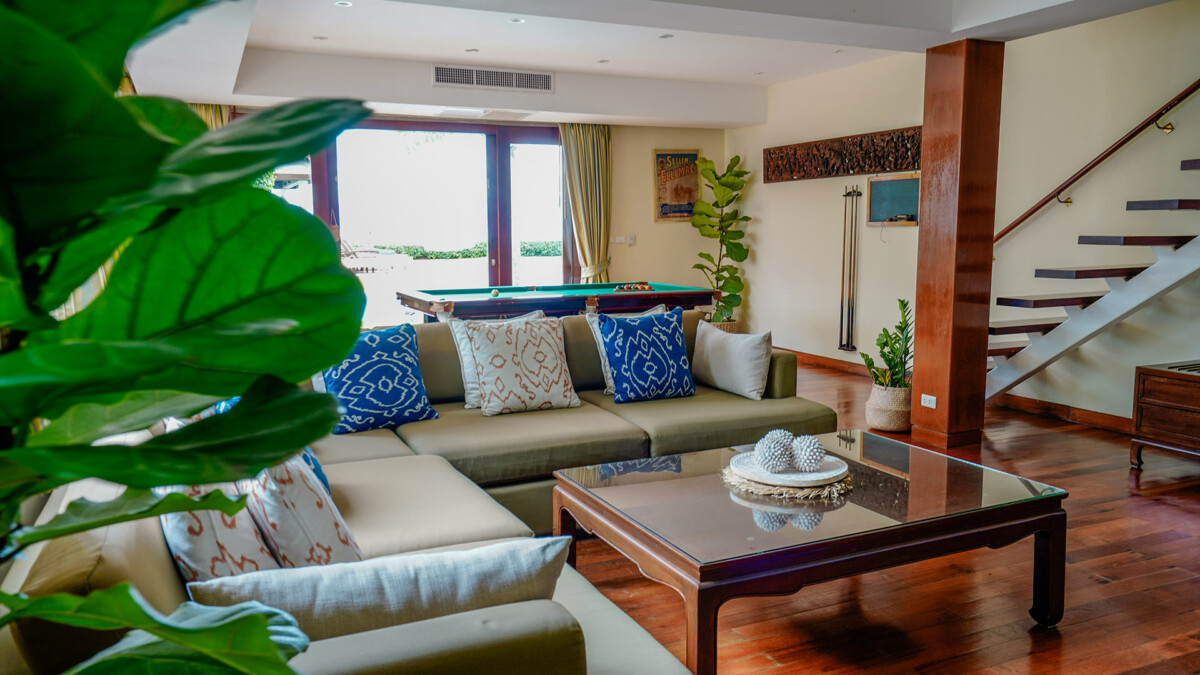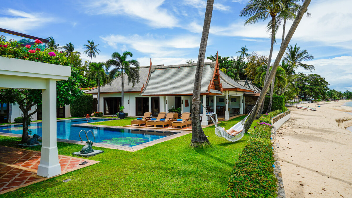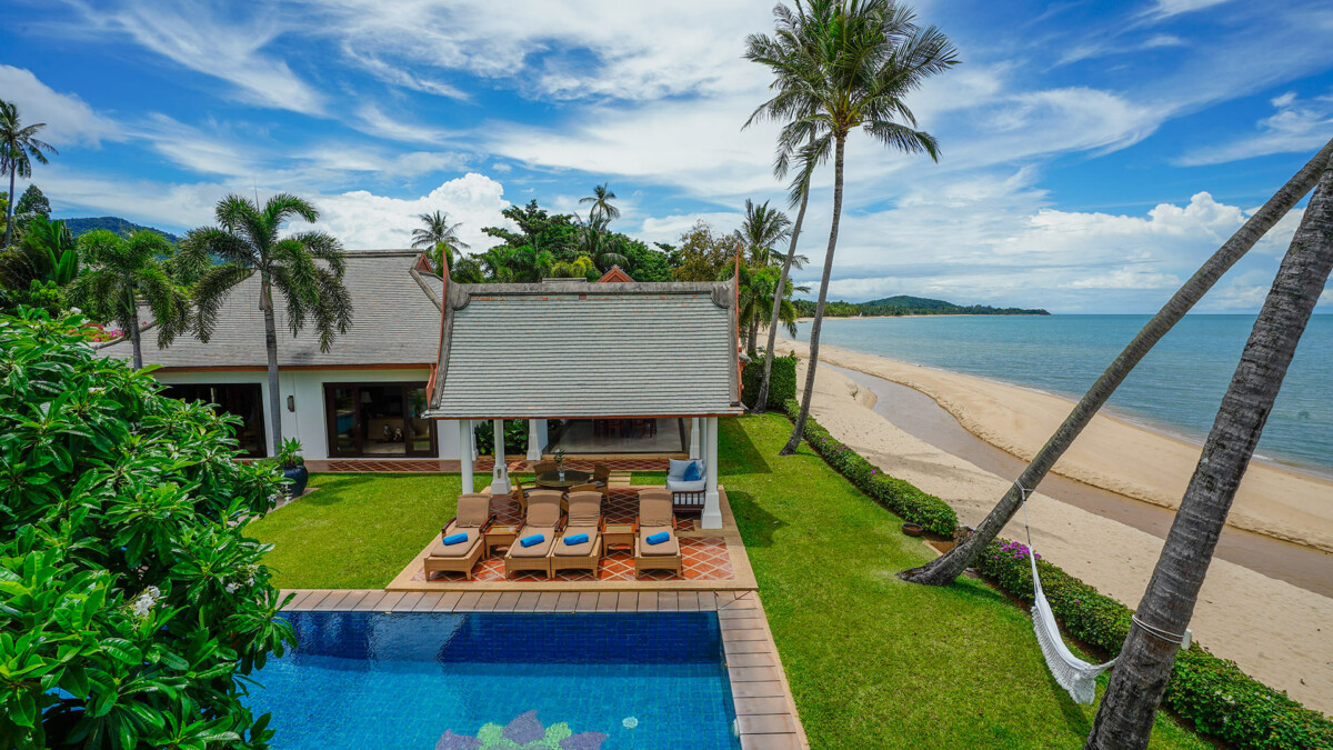La grande piscine est idéalement située au centre de la villa. Juste à côté, faisant face à la mer, vous trouverez un espace lounge confortable sous une sala thaïlandaise.