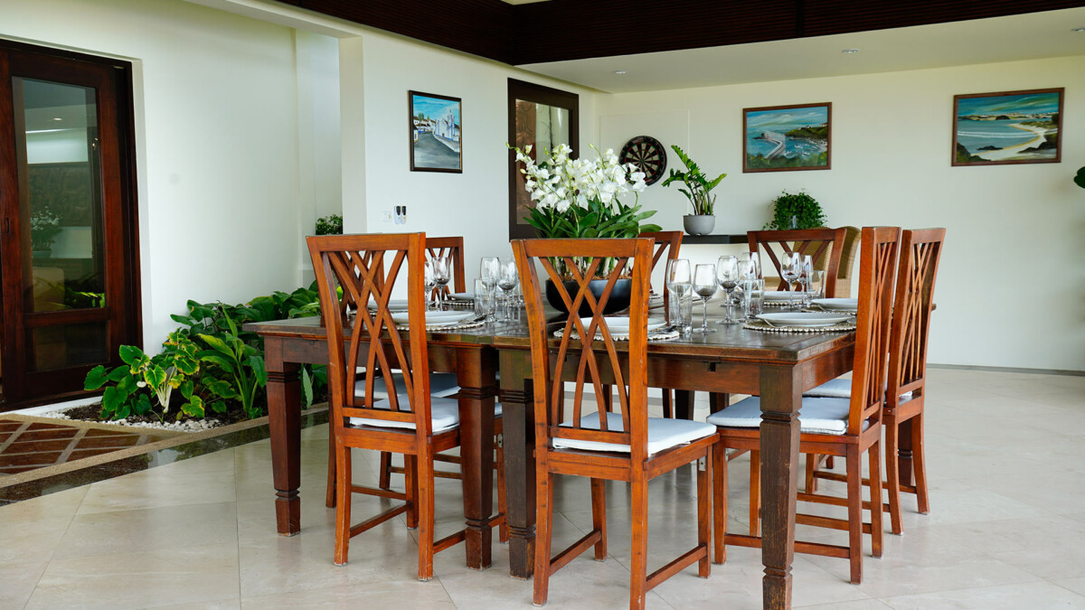 Un chef cuisinier interne est présent lorsque vous commandez à partir du menu. Nous préparons la majorité des repas dans la cuisine de votre villa. En outre, si vous souhaitez d’autres plats qui ne figurent pas sur le menu, nos chefs se feront un plaisir de vous les procurer et de vous les proposer à des prix relativement identiques à ceux du menu du restaurant de la villa.