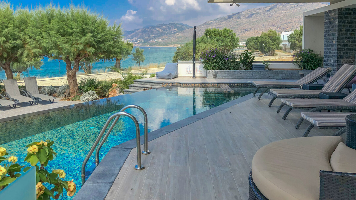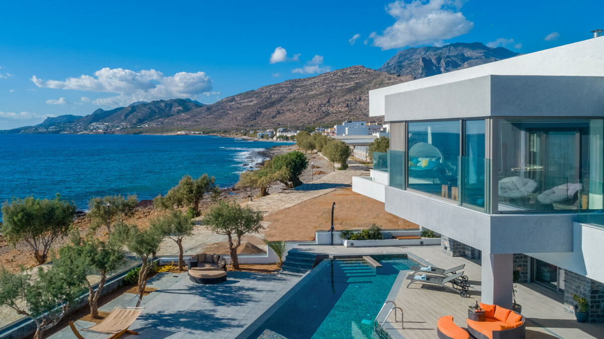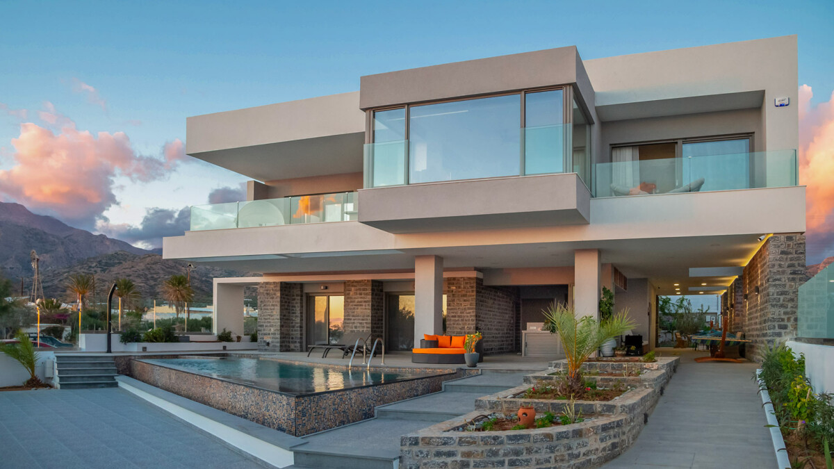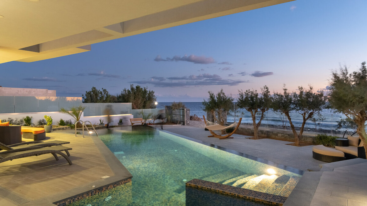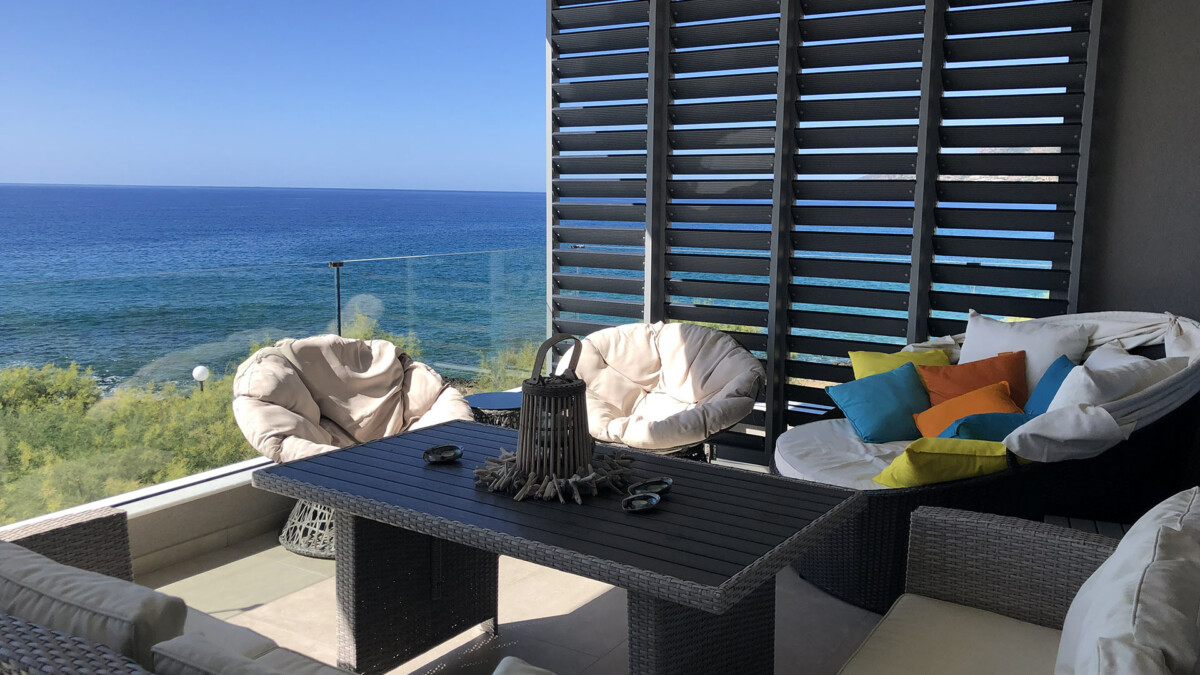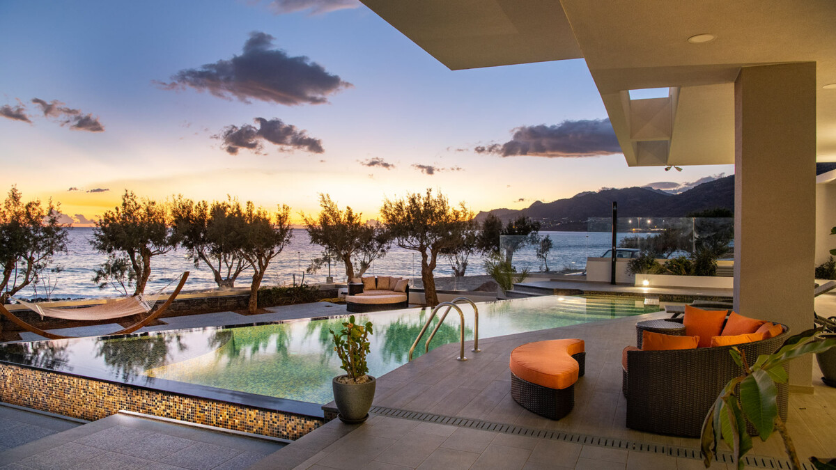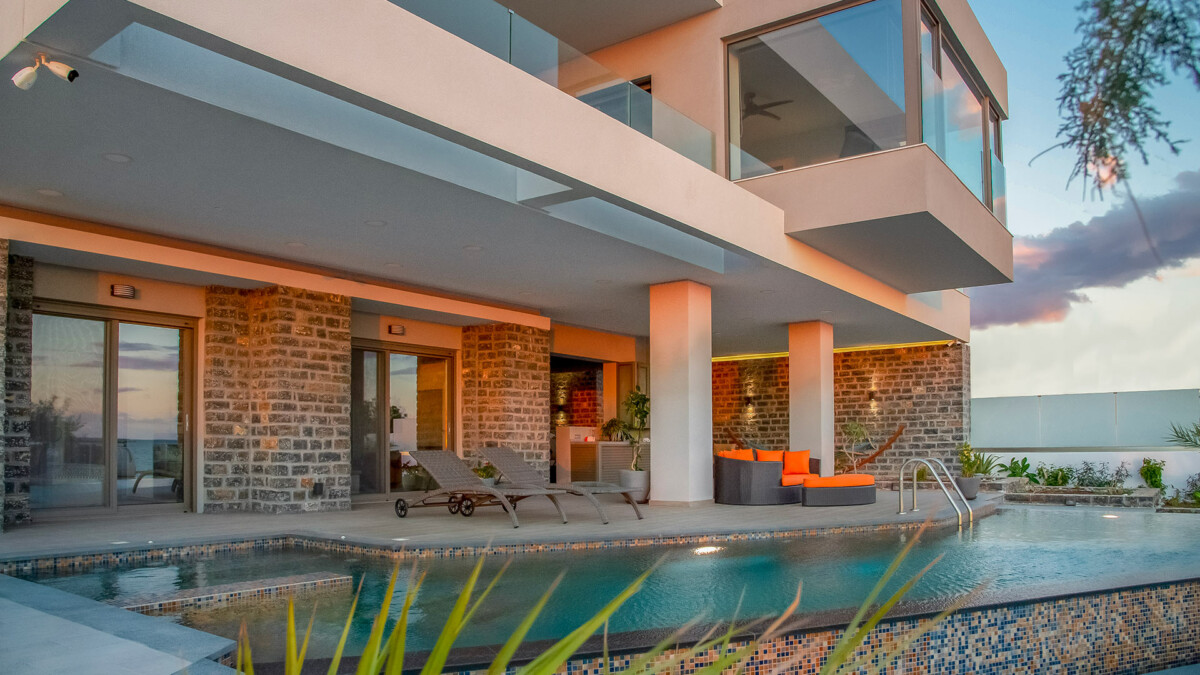 Villa de luxe de 10 chambres avec vue panoramique sur la mer, piscine privée à débordement, spa, spa chaud et de multiples espaces communs pour profiter en compagnie d’amis ou en famille.