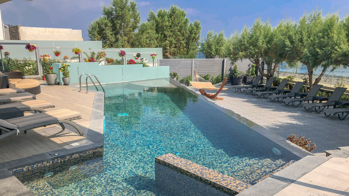 Il y a une échelle de piscine menant à la mer (également des parasols et des salons) devant la villa pour ceux qui sont de bons nageurs.