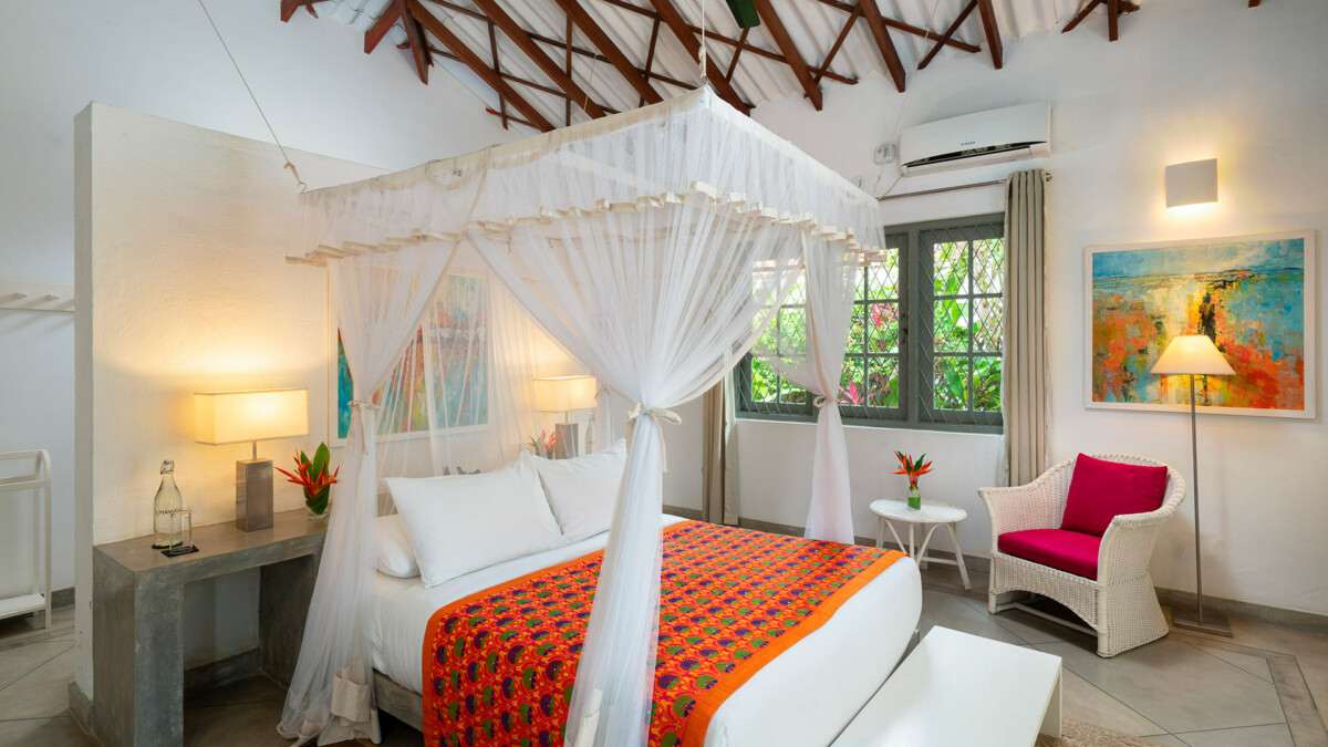 Le logement de Mahalla est de style « vieux colonial », avec deux doubles chambres avec douche et WC attenants. On a installé récemment l’air conditionné dans les chambres et il y a aussi des ventilateurs au dessus de vos tête qui gardent les pièces froides. Nous avons suspendu des filets au dessus des lits, ce qui protègent les invités contre les moustiques. La maison a une grande véranda avec un toit élevé et des ventilateurs au plafond. L’espace de vie est dehors et comprend des meubles confortables modernes en rotin avec vue directe du jardin sur a plage L’espace pour prendre les repas est au fond de la véranda en dehors de la toute nouvelle cuisine équipée. Il y a aussi le Wi-Fi.