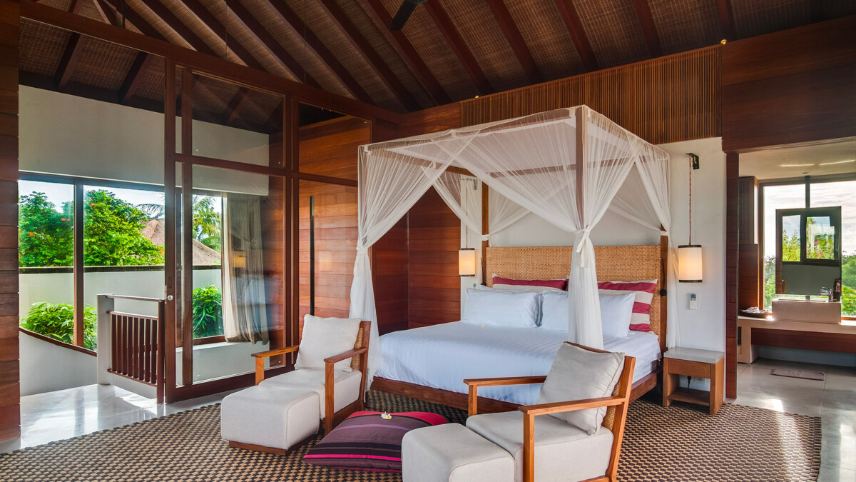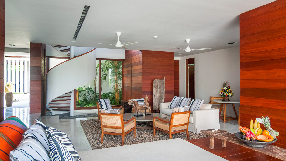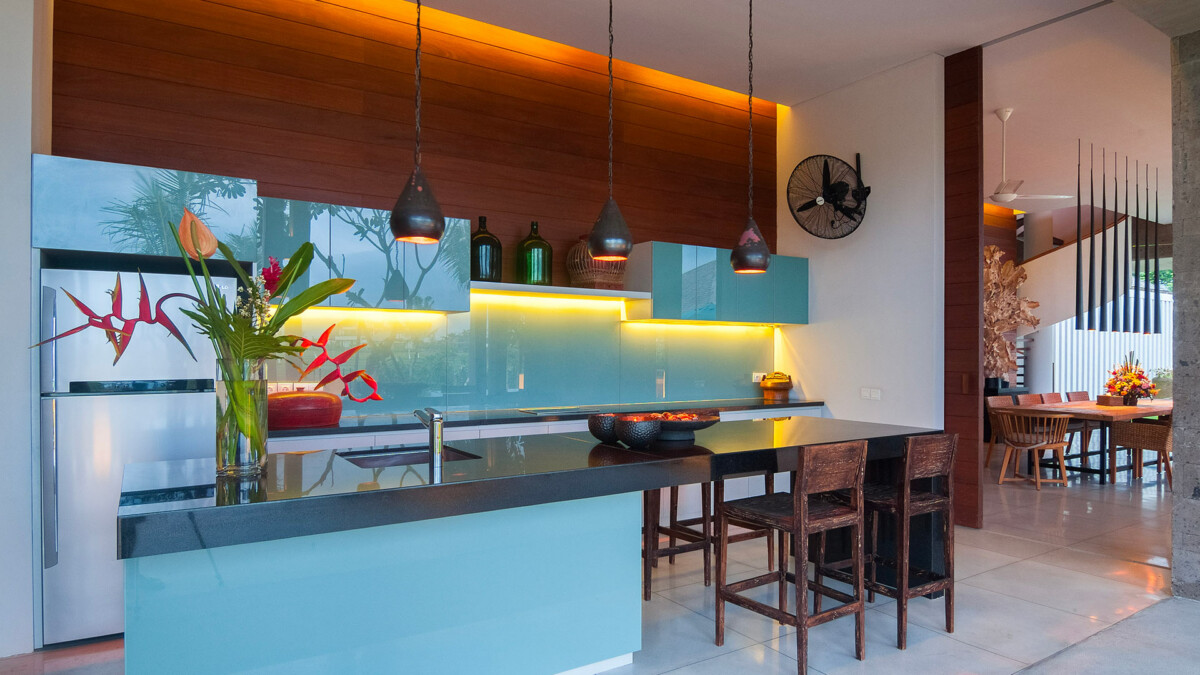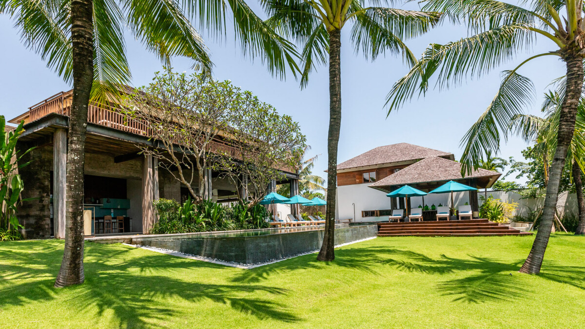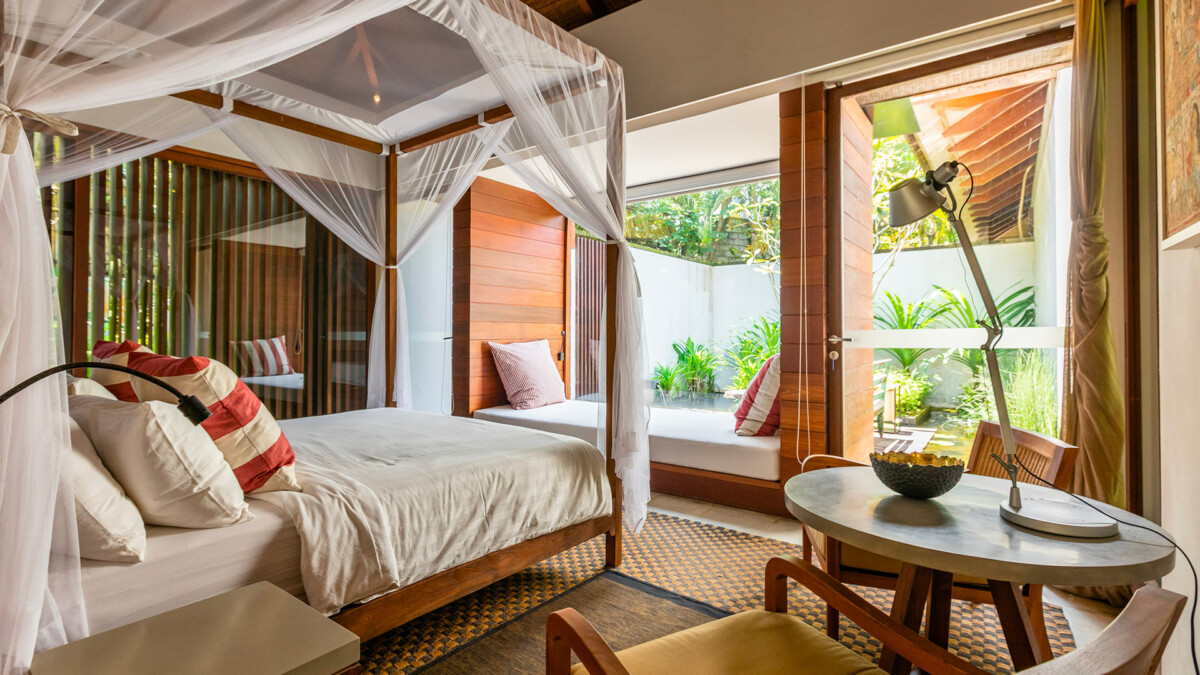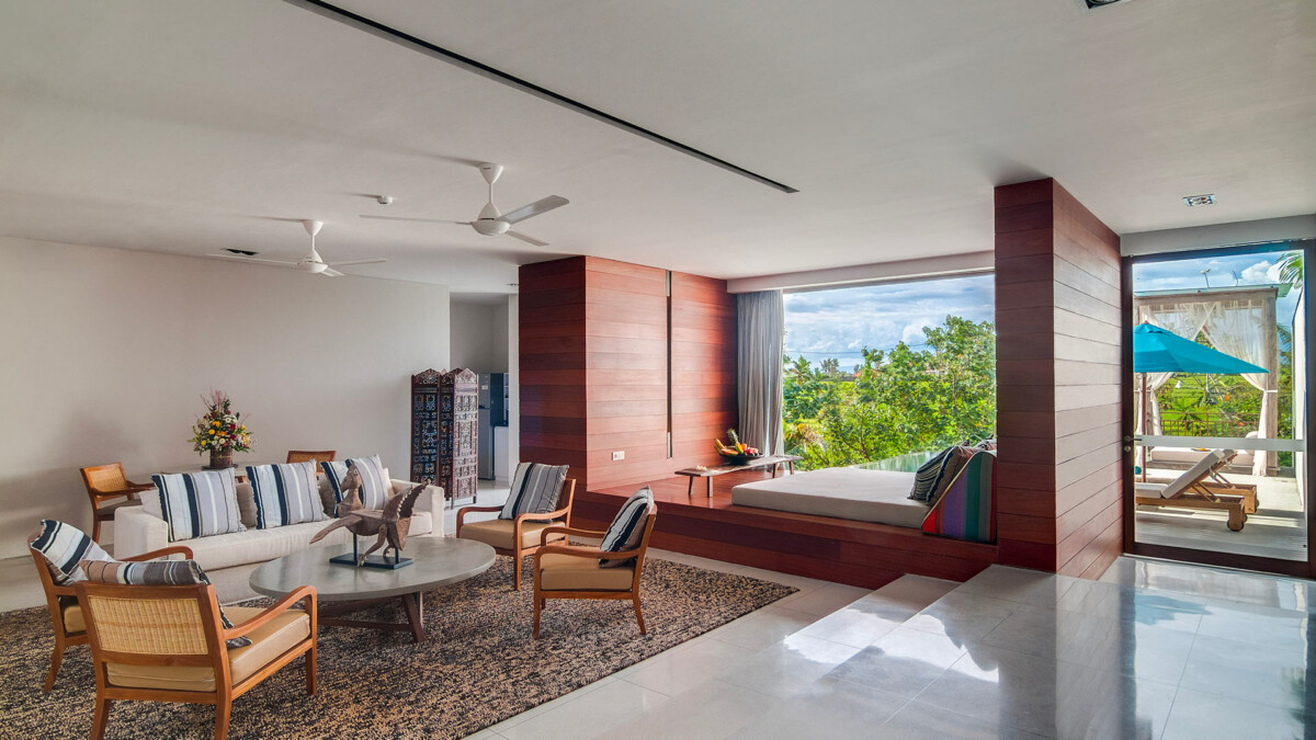 Les intérieurs sont élégamment aménagés avec des meubles sur mesure et une décoration qui mêle tradition balinaise et design moderne. Vous passerez la majeure partie de votre temps dans le pavillon principal à deux niveaux qui surplombe la piscine à débordement de 25 mètres. Chaque pièce a été soigneusement décorée pour offrir un confort ultime, incluant des lits à baldaquin avec moustiquaires, l’air conditionné, des enceintes Bluetooth et des coffres-forts. Les installations comprennent également des espaces de vie communs somptueux, une cuisine complètement équipée pour satisfaire toutes vos envies culinaires, et une connectivité Wi-Fi rapide et gratuite.