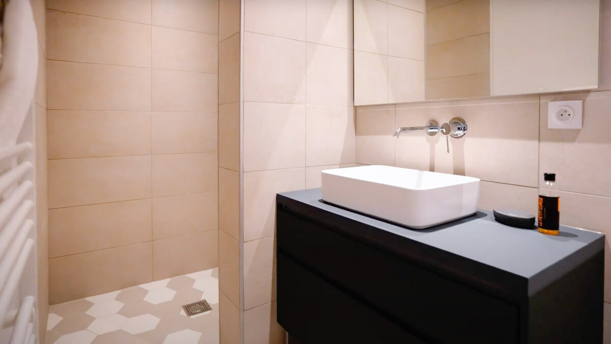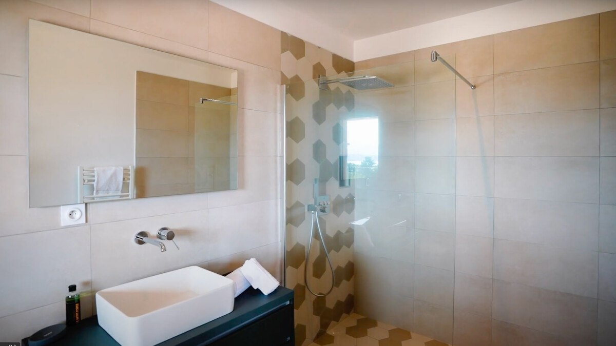 Cette propriété dispose d’une terrasse de 60 mètres carrés, offrant une vue panoramique sur la mer.