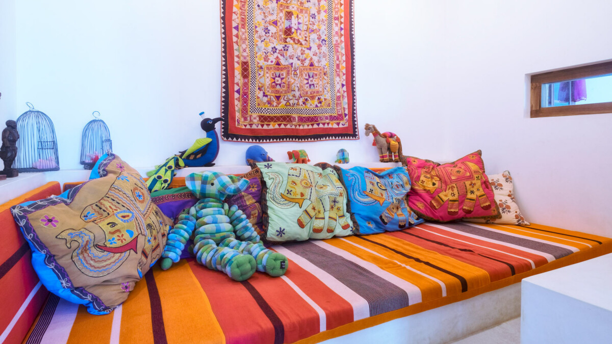 Le coin enfants : Rez-de-chaussée. Climatisation. Canapé intégré. LA TÉLÉ.