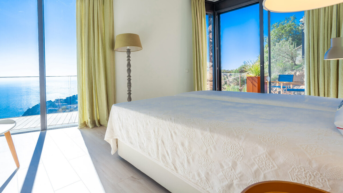 Les chambres sont réparties entre les deuxième et troisième étages. Au deuxième étage, nous avons 3 chambres. L’une d’elles comprend un très grand lit double avec une salle de bains privative avec baignoire et douche. La deuxième chambre dispose d’un lit double et la troisième chambre de 2 lits simples. Ces deux dernières chambres partagent une salle de bain avec baignoire et douche, et ont accès à une terrasse avec une vue spectaculaire sur la mer. Au troisième étage, nous avons 2 chambres. La quatrième chambre est la suite principale et comprend un lit king-size avec une salle de bain privée avec douche et baignoire. La cinquième chambre a des lits superposés (2 lits superposés) avec une salle de bain privée avec douche. Les deux chambres ont accès à une terrasse spectaculaire avec vue panoramique sur la mer Méditerranée. À cet étage il y a une petite cuisine. La climatisation est installée dans toute la maison.