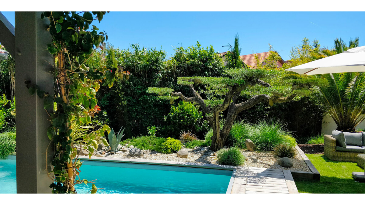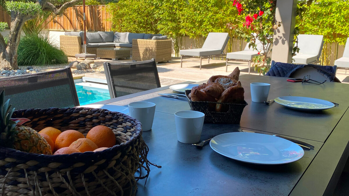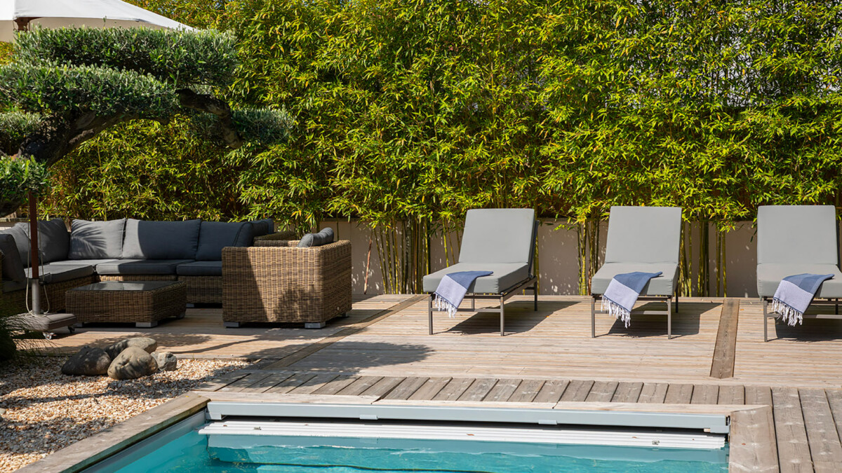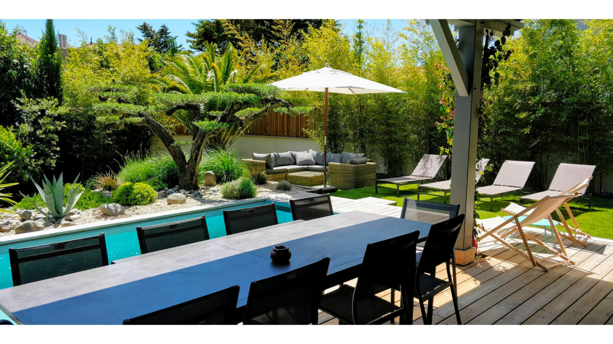 Le jardin de la demeure est un véritable havre de paix, entouré de verdure et d’un olivier bonzaï central. La piscine chauffée vous invite à vous rafraîchir et à vous détendre tout au long de la journée. Le salon extérieur et la cuisine d’été et le terrain de pétanque sont parfaits pour prolonger vos journées et profiter des longues soirées d’été.