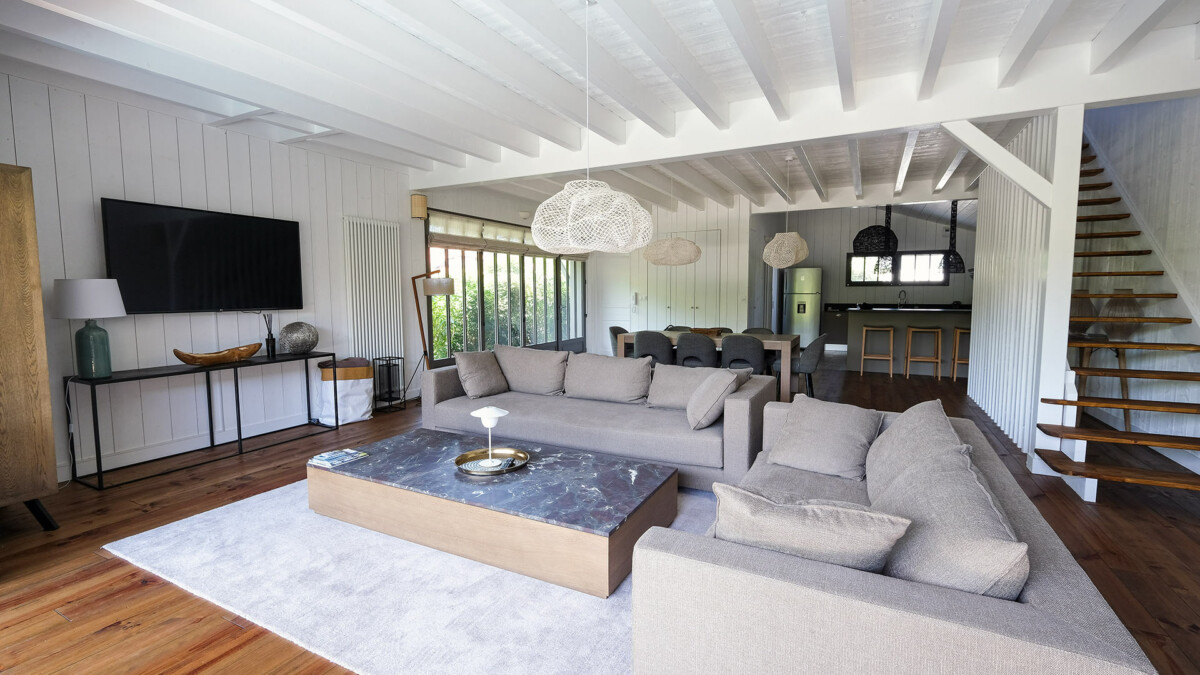 Située à quelques pas de la place du marché et à seulement 40 mètres de l’Hôtel Côté Sable et de la célèbre pâtisserie Frédélian, la villa bénéficie d’un emplacement privilégié dans le village du Cap Ferret.