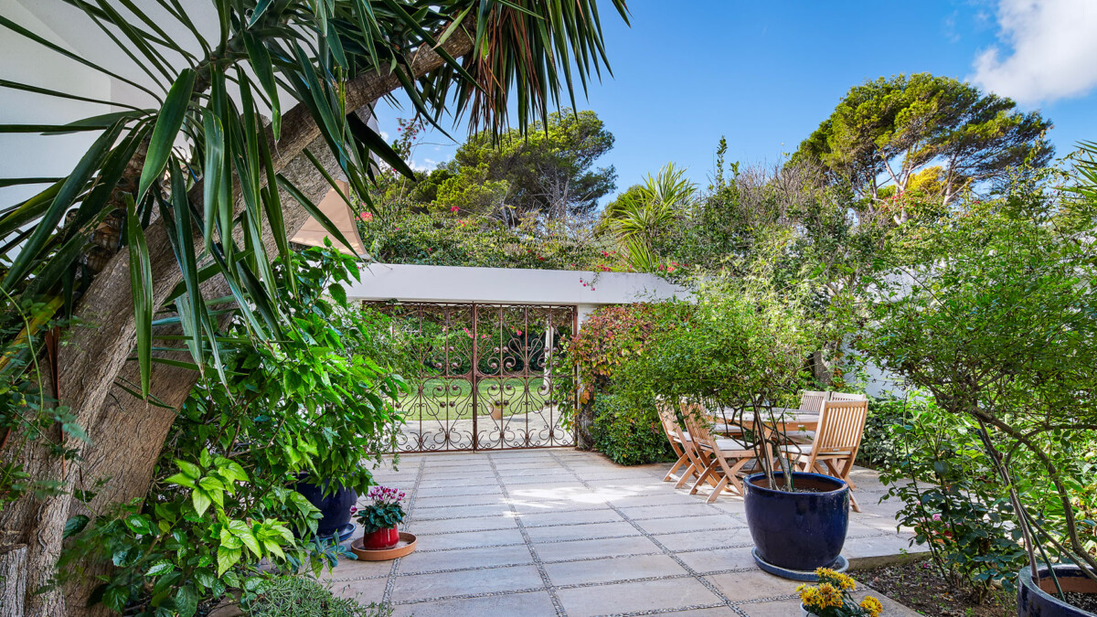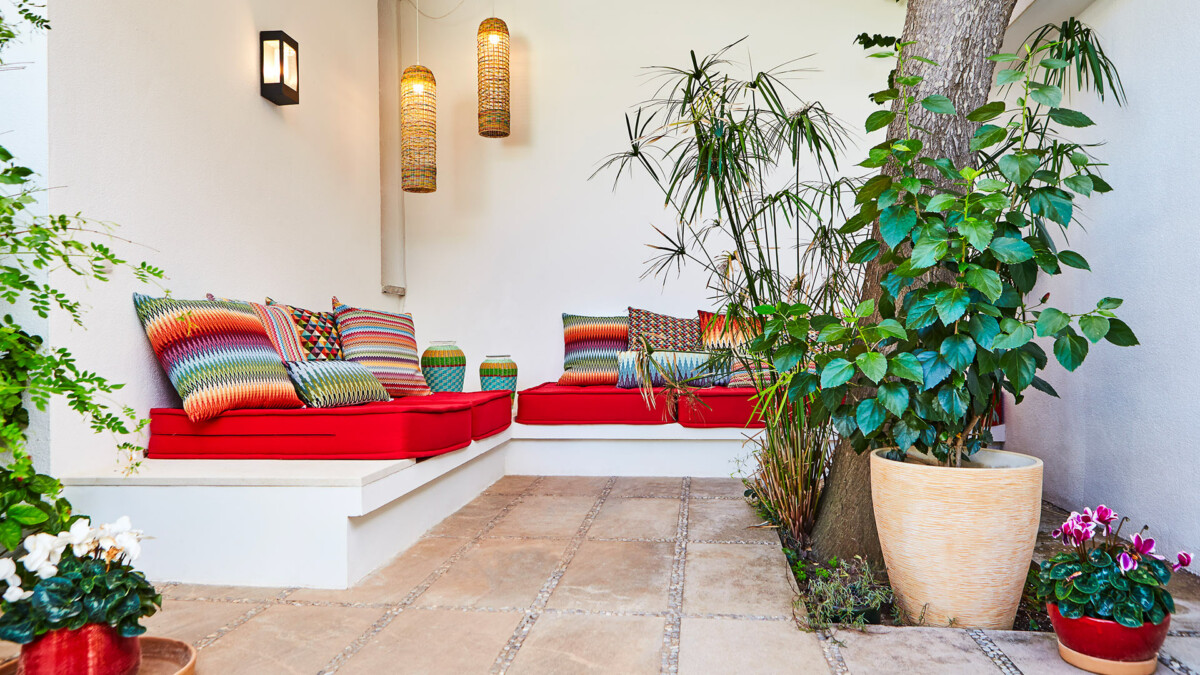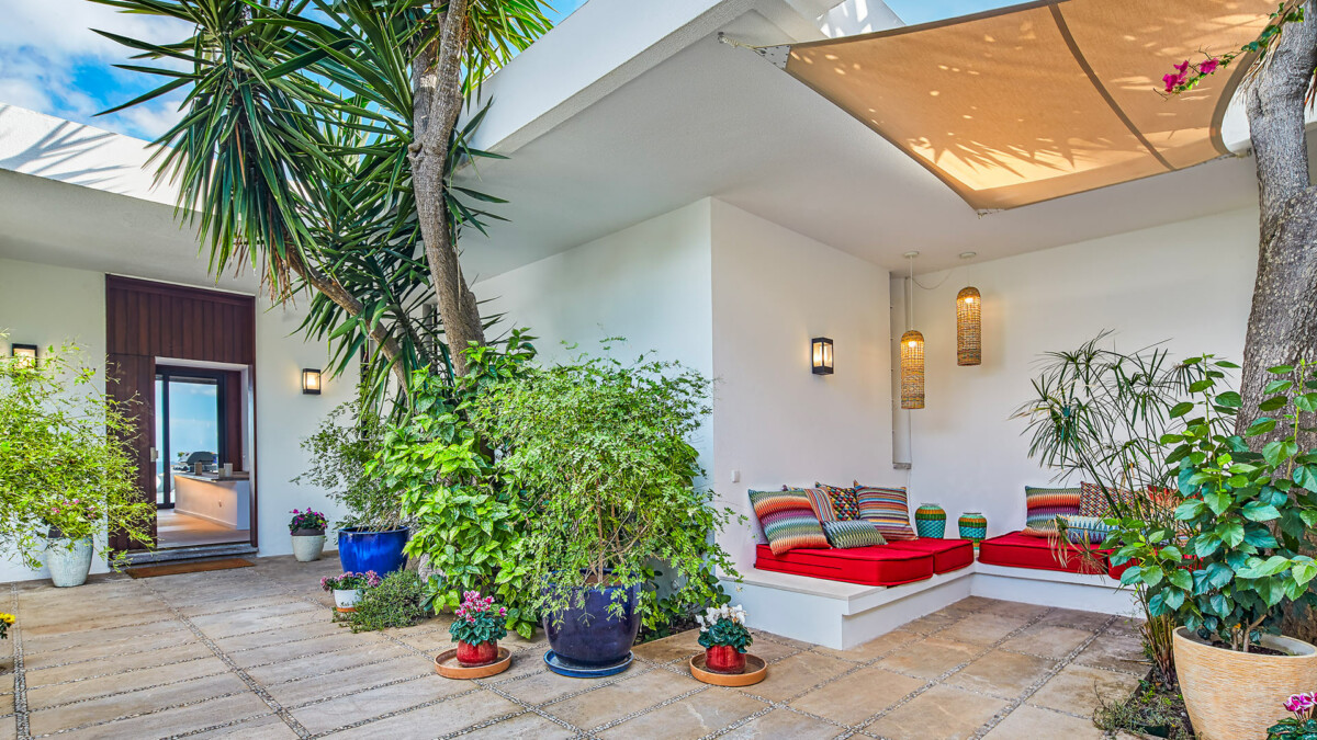 Le salon extérieur est l’endroit idéal pour profiter de l’expérience de la villa. Le jardin luxuriant dispose de plusieurs endroits ombragés ou ensoleillés pour des moments de rassemblement autour d’un délicieux repas ou de détente avec un bon roman.