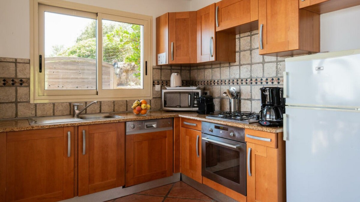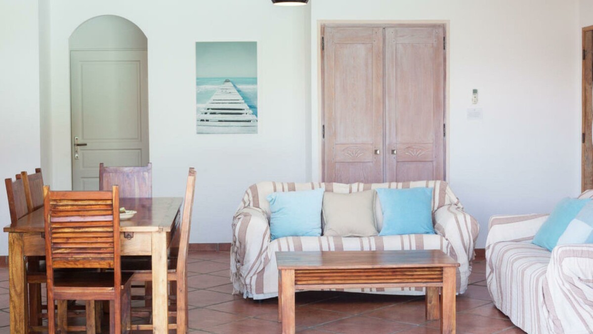 Les hôtes pourront apprécier la cuisine entièrement équipée ainsi que le confortable salon/salle à manger avec canapé convertible et accès à la terrasse couverte.