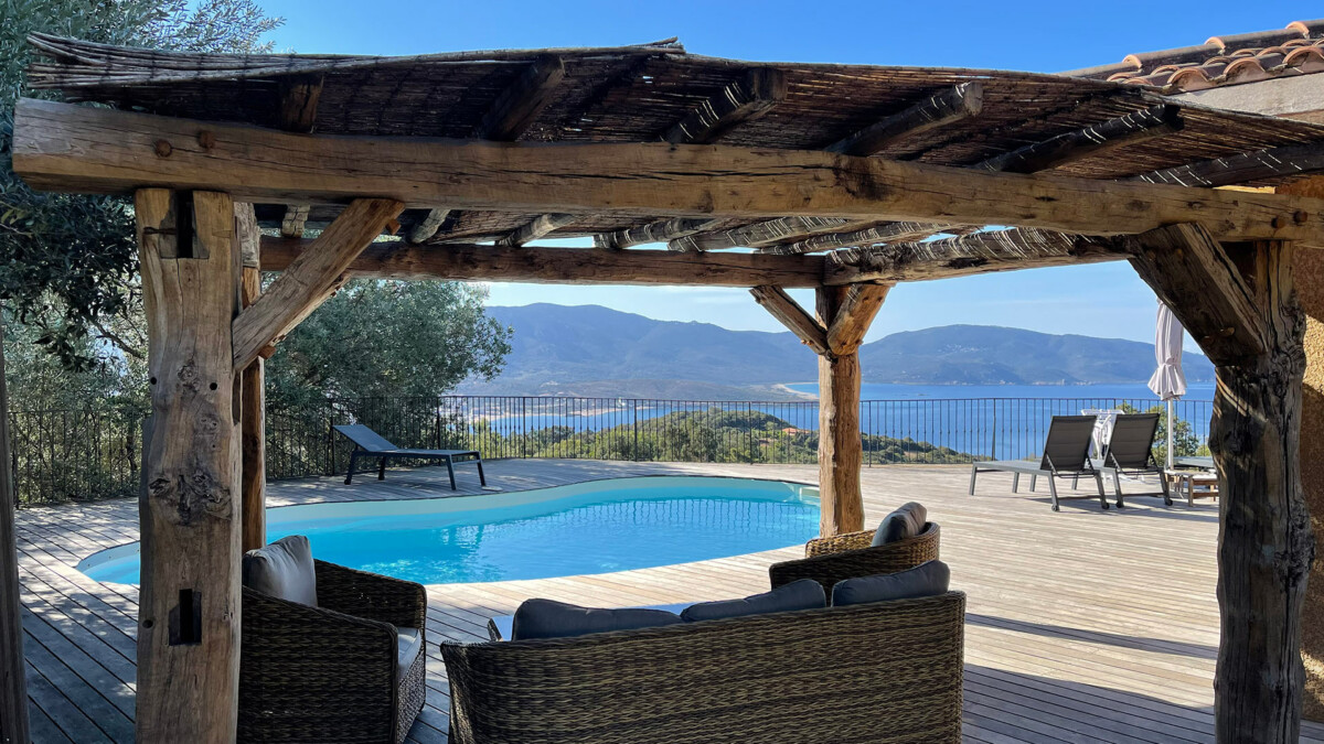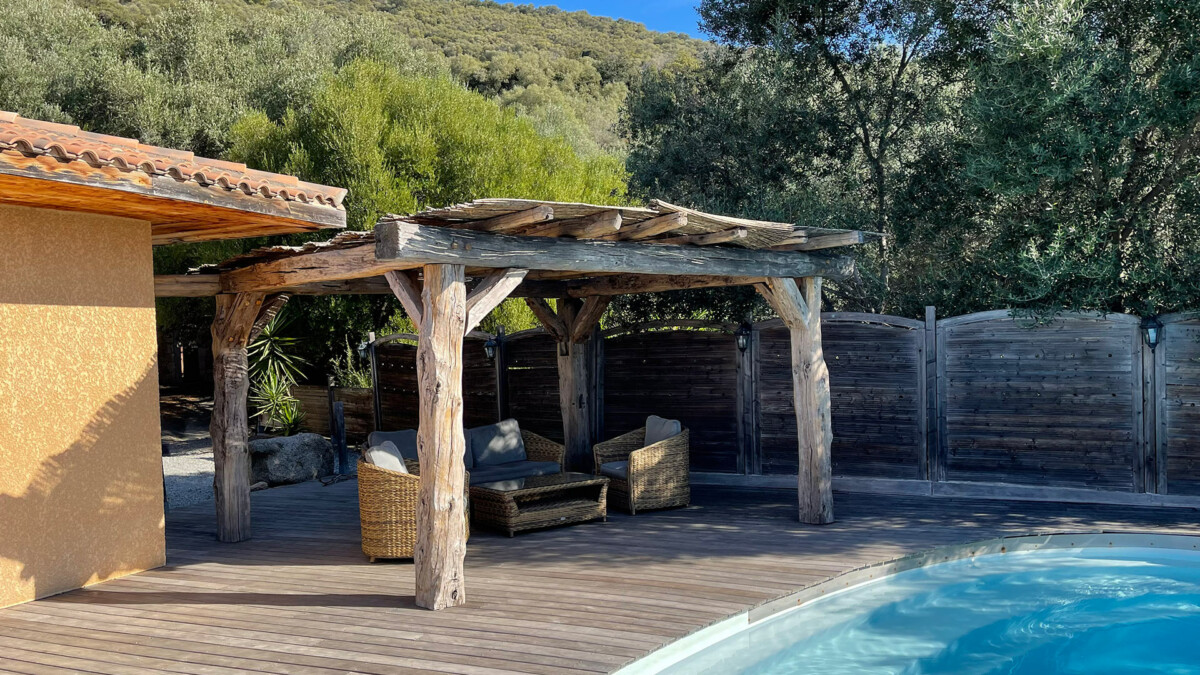 La Villa Murietta est une jolie maison de deux chambres et avec piscine chauffée, située au coeur d’un domaine privé, à Olmeto. Pouvant accueillir jusqu’à 6 personnes, elle offre à ses hôtes une incroyable vue sur la mer. Cette demeure est un lieu de séjour exceptionnel pour de magnifiques moments en Corse.
