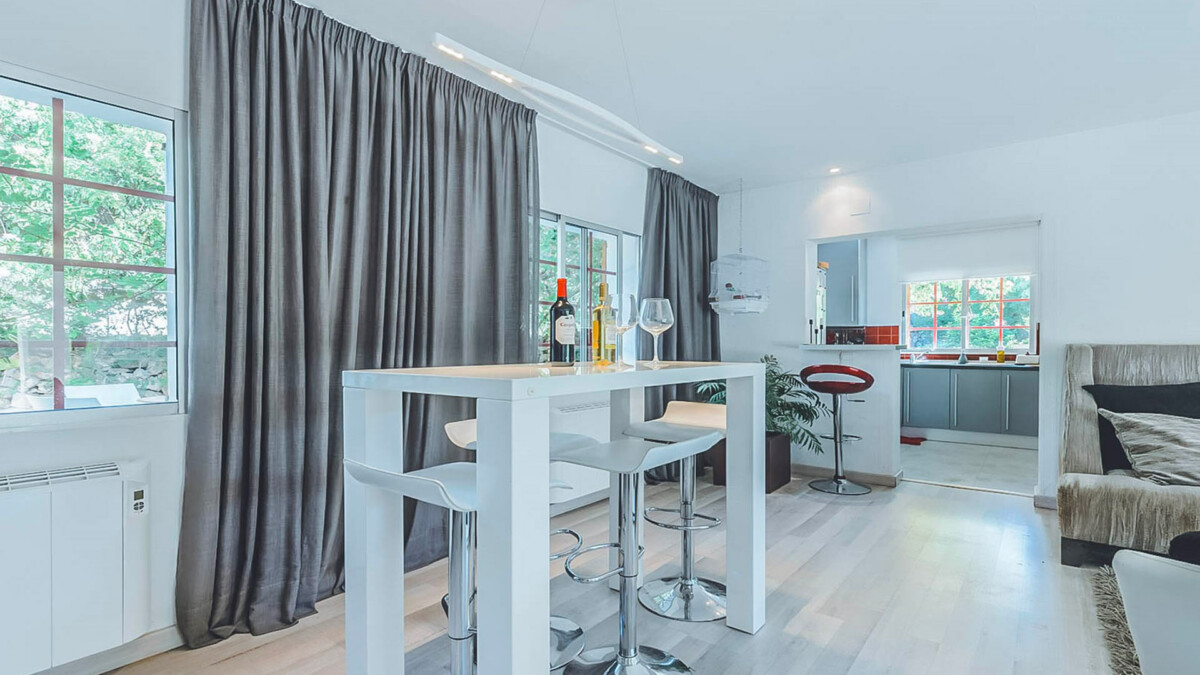 À l’intérieur, le salon spacieux, offre un espace idéal pour des moments paisibles. La cuisine entièrement équipée est dotée de tous les appareils modernes que l’on peut attendre.