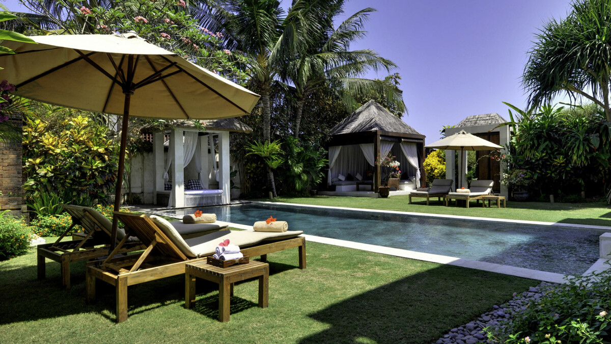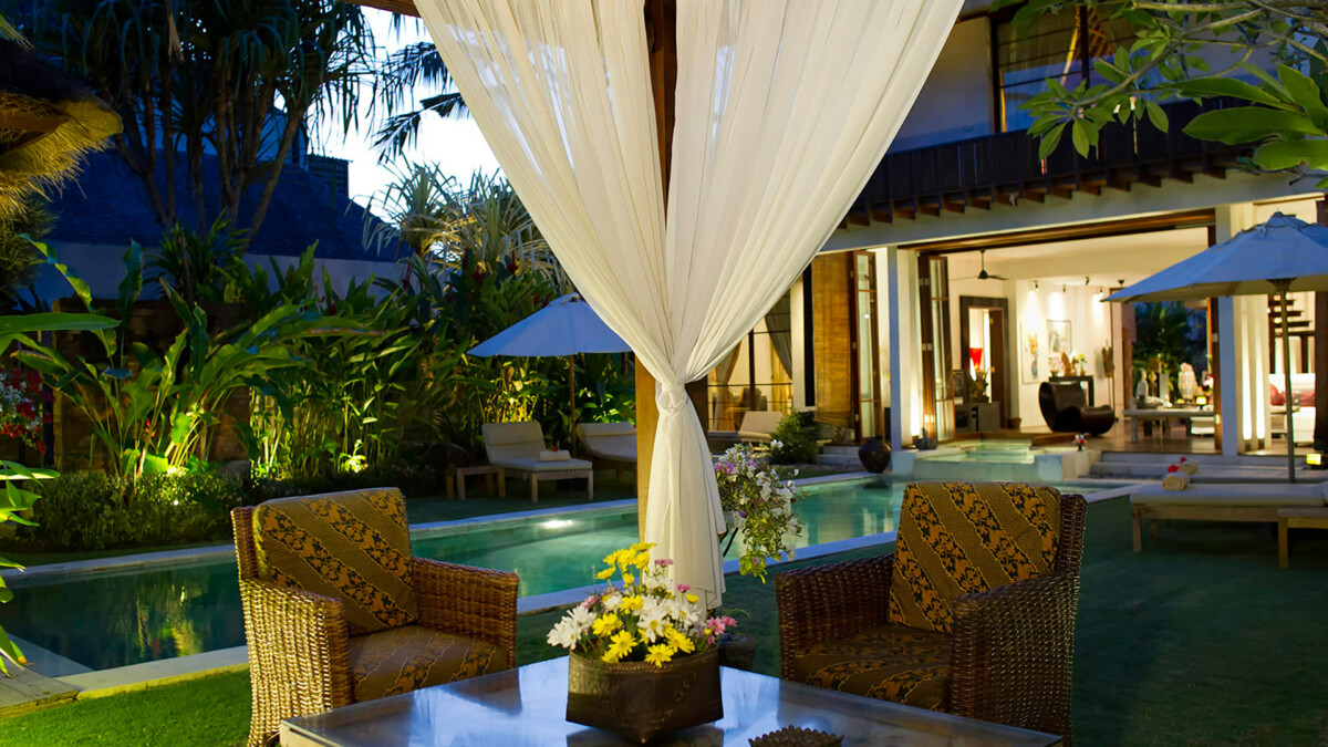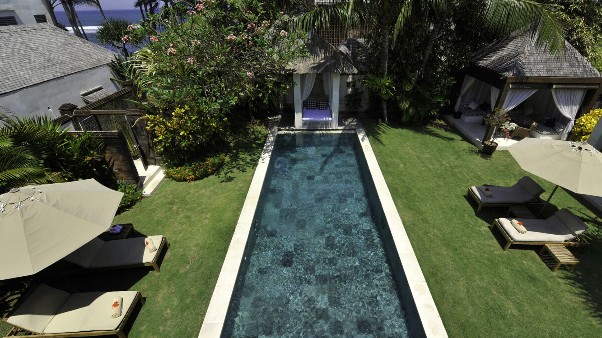 Villa Nataraja is a beautiful two-storey sea-view villa with an enclosed garden featuring a 14 x 4 metre swimming pool, 1.8 metres deep and lined with green Java stone. A massage pavilion is located at one end of the pool and a Bengong Bale (relaxation pavilion) is located in a corner of the garden.