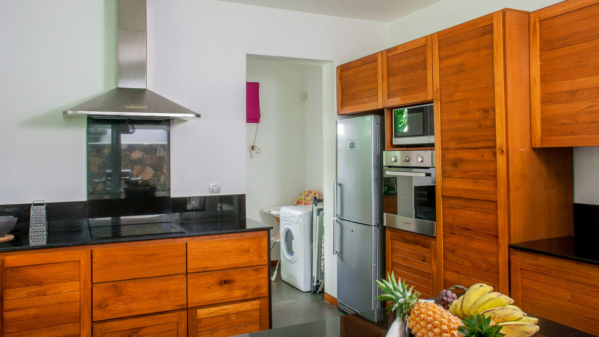 La villa possède un mobilier de qualité, la climatisation, des écrans TV Plasma avec chaines satellitaires, d’une salle à manger meublée de finitions de haute facture et d’une cuisine en bois de teak toute équipée avec un plan de travail recouvert de granite.