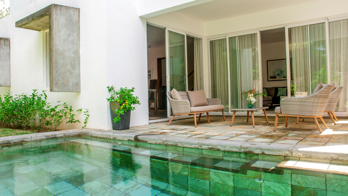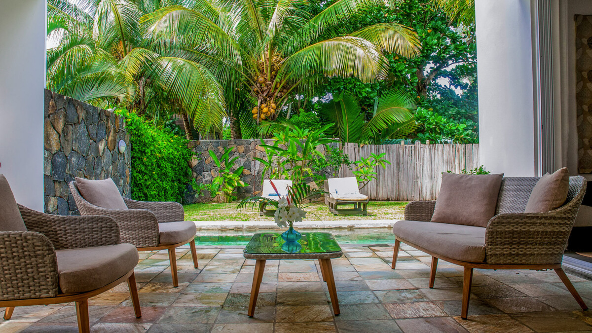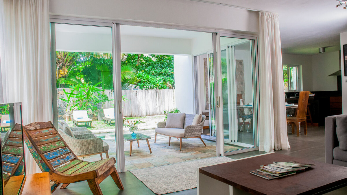 La villa est élégante, entourée de jardins exotiques à quelques pas d’une plage de sable blanc avec une vue imprenable sur l’Océan Indien et ses eaux éblouissantes.