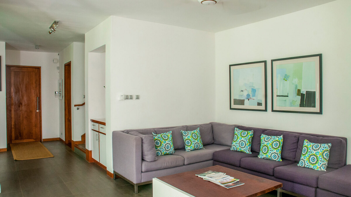 La villa comprend deux étages. Le rez-de chaussée qui donne sur les jardins et la piscine privée. Le salon-salle à manger offre une vue magnifique qui invite à une promenade sur la plage de sable fin ou à un plongeon dans le lagon turquoise. L’étage se compose des spacieuses et confortables chambres à coucher, d’une salle de bain haut de gamme et d’une salle de télévision chaleureuse.