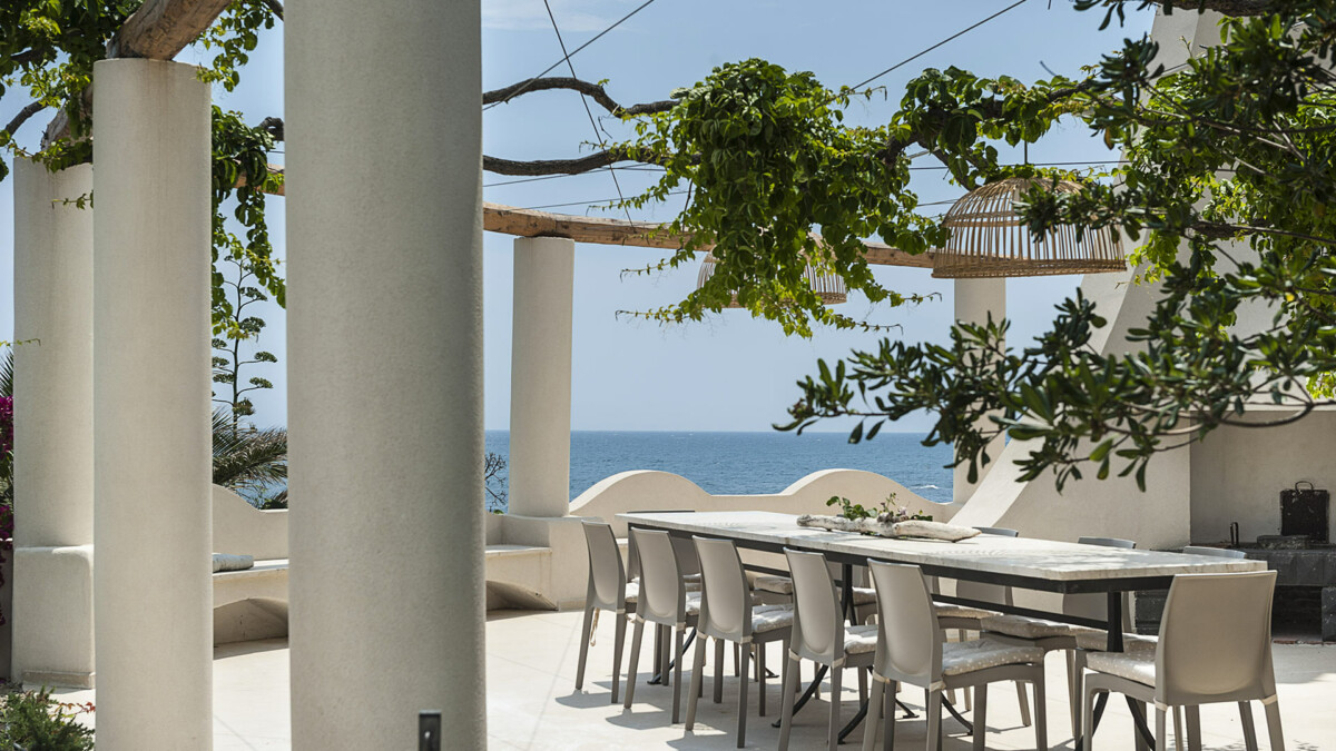 L’extérieur de la villa propose de nombreuses fonctionnalités pour profiter de votre séjour: une véranda, des terrasses, une piscine, un solarium. Sont disposés dans le jardin des tables, chaises longues et parasols, tout est réuni pour pouvoir profiter pleinement du soleil. L’une des principaux atouts de la villa est son accès direct à la mer depuis la terrasse de la Villa.