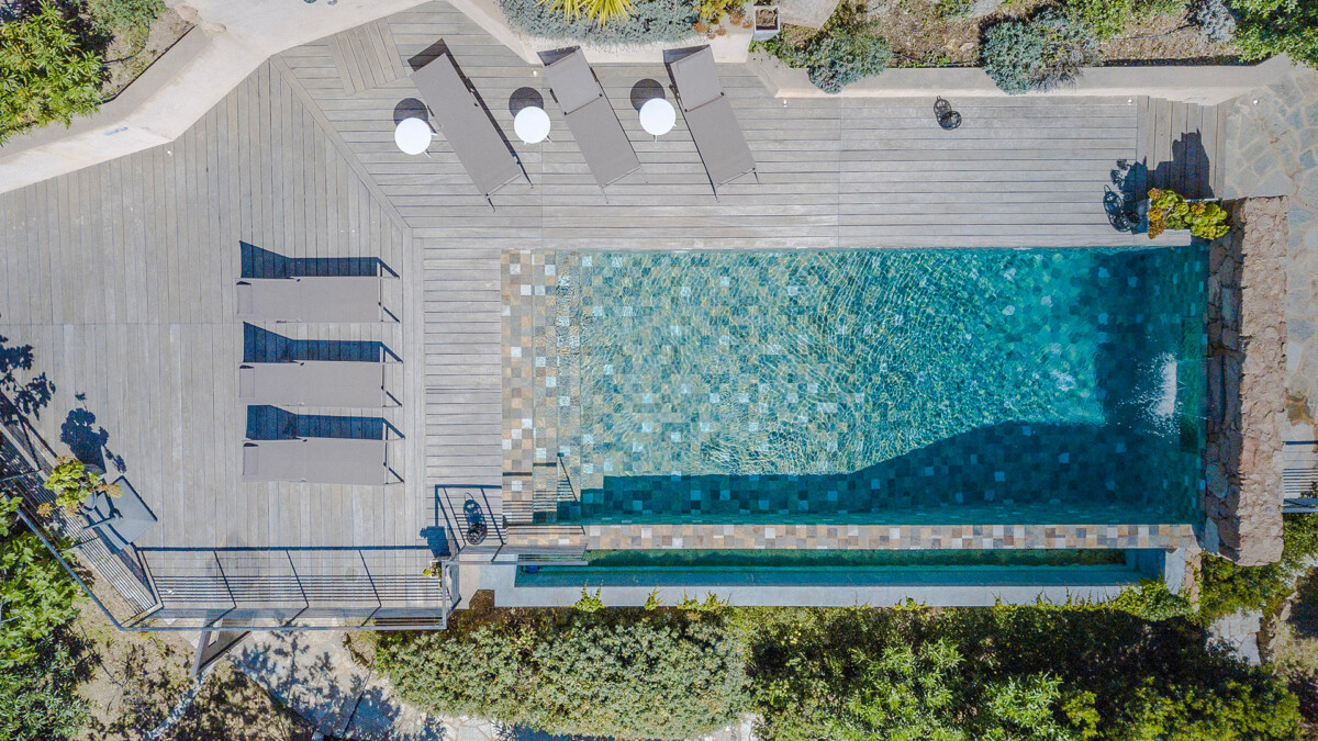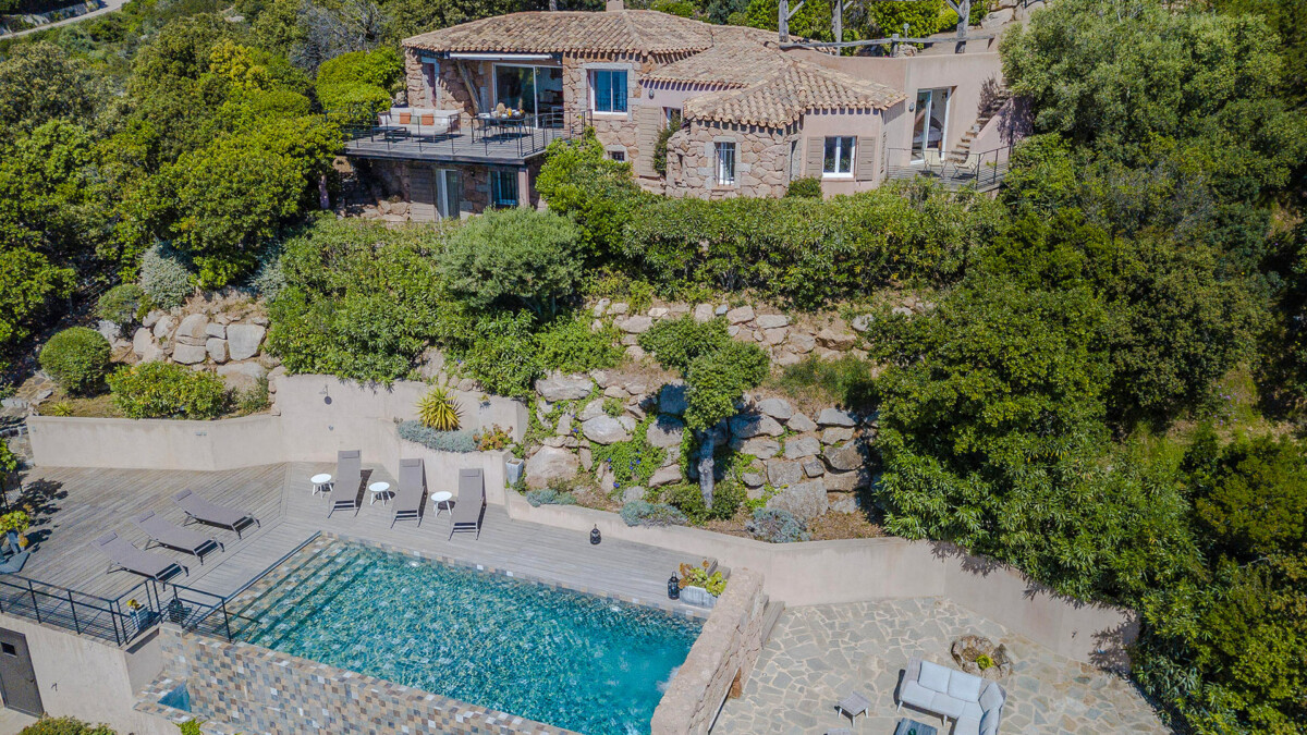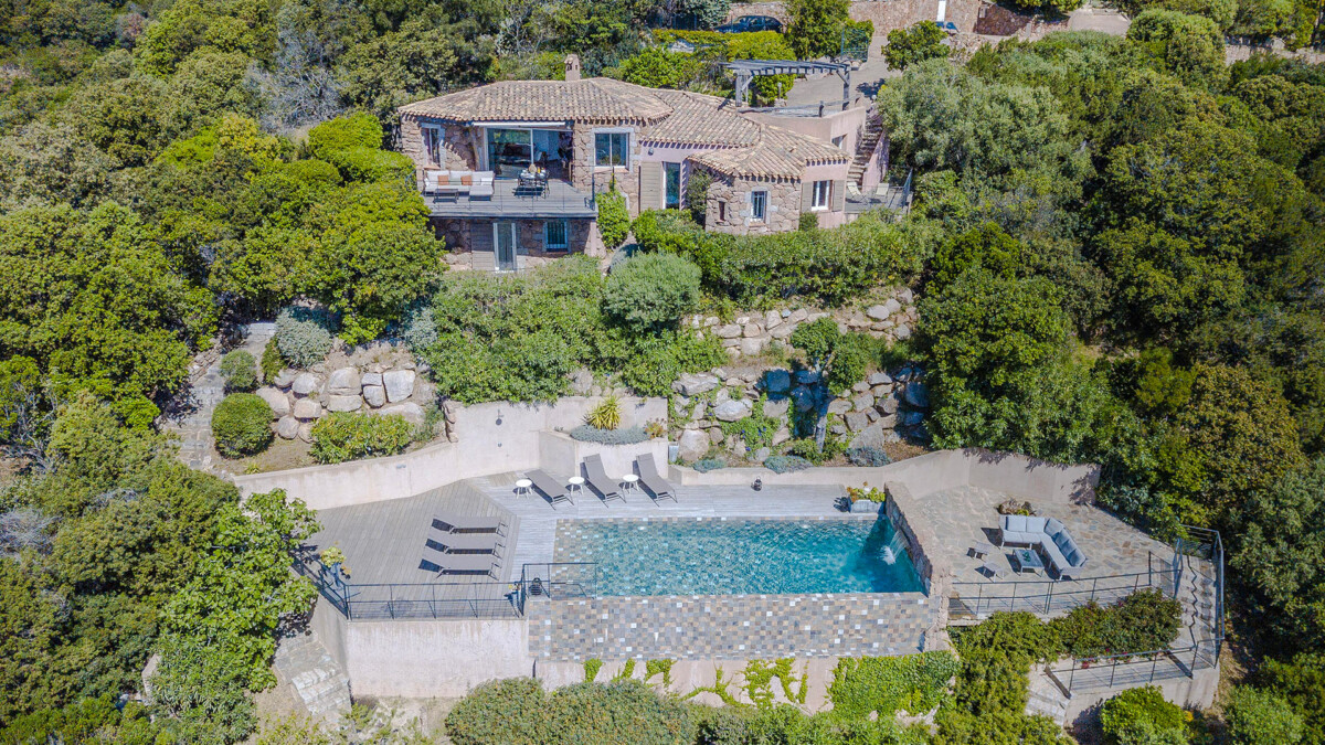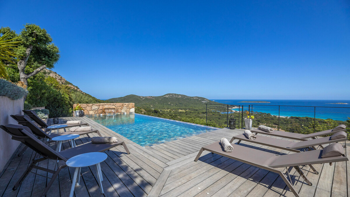Vous pourrez profiter à loisir de sa superbe vue mer dégagée, de plusieurs terrasses parfaites profiter du soleil tout au long de la journée, ainsi que de sa piscine à débordement avec cascade et vue imprenable a 180° sur Palombaggia.
