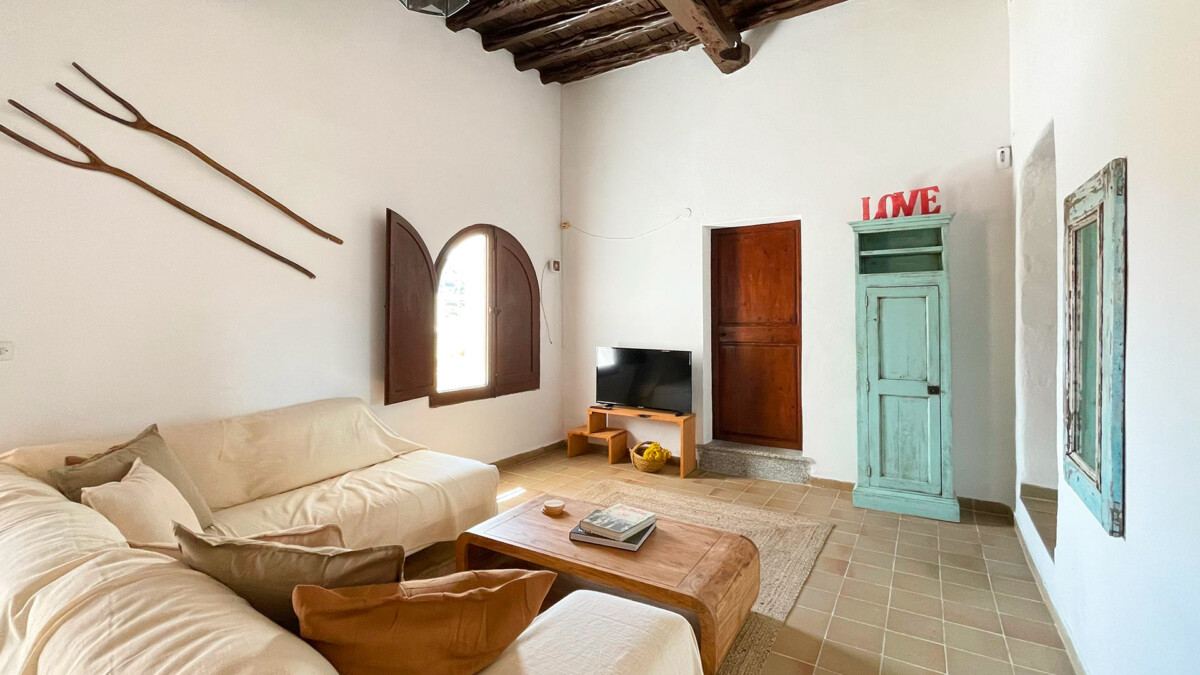 Cette agréable demeure au charme rustique, est dotée de hauts plafonds, de sols en céramique et de belles portes en bois.