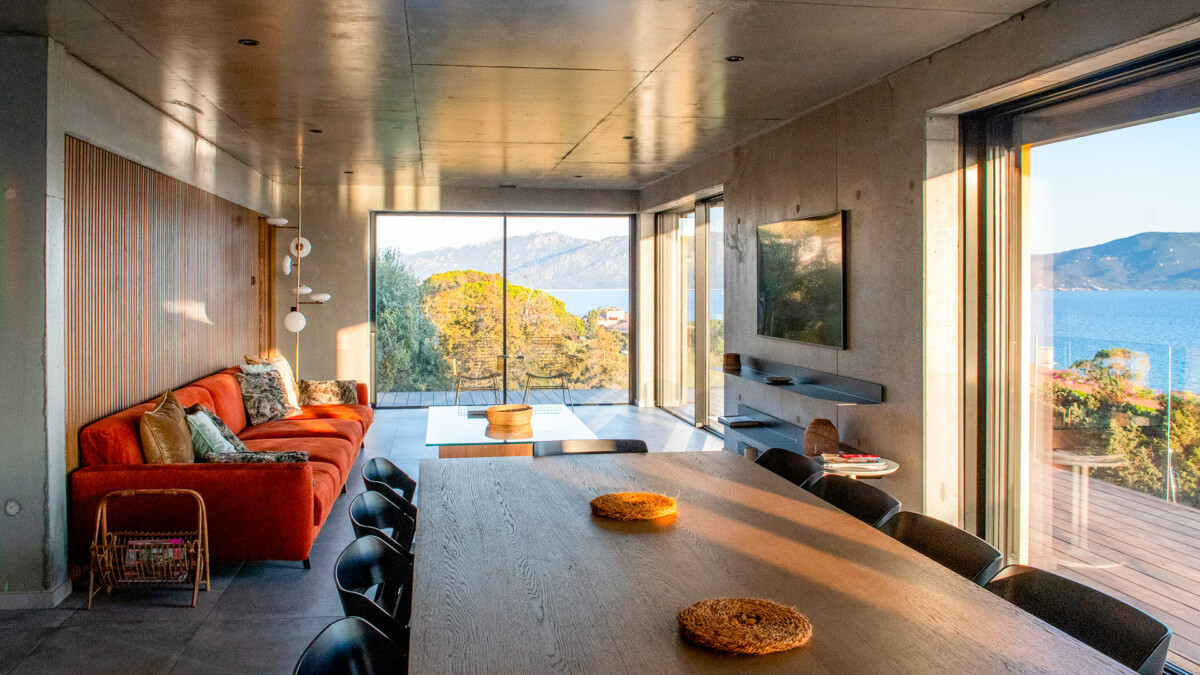 La Villa Oléine est une maison contemporaine et écologique, située en bord de mer, à Olmeto. La maison prend place au coeur du maquis et des oliviers tout en étant à proximité des commerces et des restaurants d’Abbartello. En plus de son incroyable position à seulement 250 mètres des plages, cette superbe demeure avec piscine à débordement, vous offre une vue imprenable sur la baie du Valinco. C’est un lieu de séjour idéal pour de belles vacances en Corse.