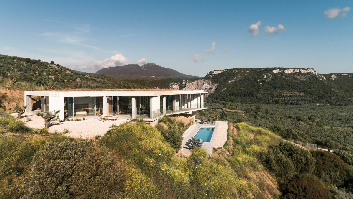 Origine est une nouvelle villa design qui a été construite dans la région de Pylos, en Messénie. Conçue par le célèbre architecte français, M. Frederic Druot, la maison se trouve dans le village de Pyla, à seulement 5 km de la ville de Pylos, sur une colline qui offre des vues incroyables sur la mer. La propriété est également à proximité immédiate des terrains de golf. Si vous êtes à la recherche d’une villa pittoresque et unique avec vue sur la mer, cette propriété est le refuge parfait pour vous. C’est un lieu de séjour idéal pour s’éloigner de l’agitation des grandes villes et profiter de vacances paisibles et uniques, tout en explorant les beautés de la terre messine.